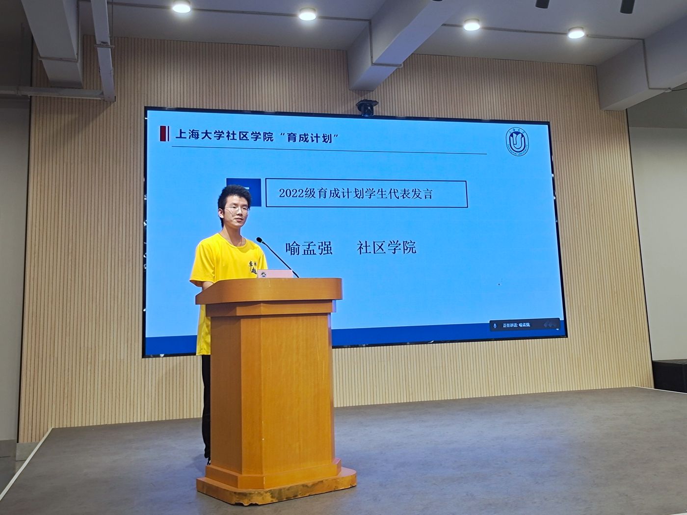 2022级育成计划学员、理工Ⅰ类学生喻孟强就成功入选育成计划表达了欣喜之情,并希望在育成计划中得到理想目标、专业方向、个人能力和综合素养等方面的培养和指导,他相信大家定能通过坚持不懈的努力和持续不断地探索,创造非同一般的反响,与非同一般的未来。随后他带领了全体2022级育成计划学员进行庄严宣誓。