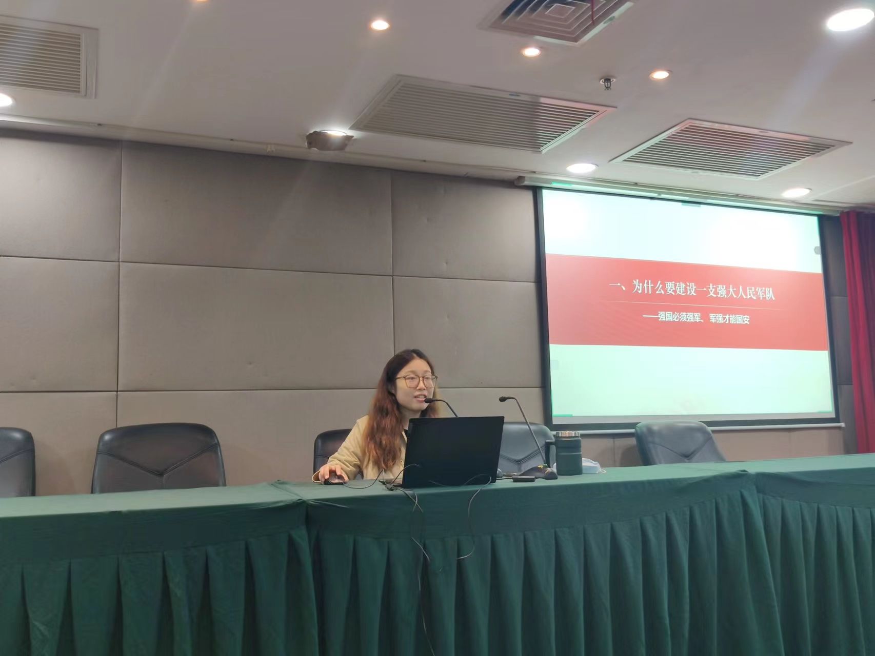 张青子衿博士以“以习近平强军思想:强军兴军的科学指南”为主题,从“为什么要建设一支强大人民军队”、“怎样建设巩固国防和强大人民军队”、“人民军队怎样捍卫国家主权、安全、发展利益”三个方面进行了阐述,张老师以生动的案例与详实的数据,深入浅出地向老师们讲解了习近平强军思想及我国军队建设的现状。