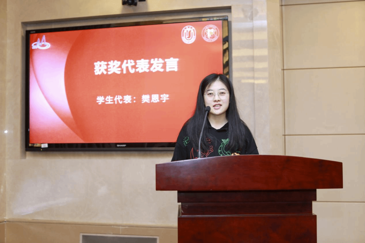 获奖教师代表孟沆洋、学生代表樊恩宇分别发表了获奖感言,表达了对郭玮、徐海珍伉俪慷慨捐赠的感谢,分享了个人在科研、工作与学习中的感想和成果,他们表示要始终坚持“自强不息;先天下之忧而忧,后天下之乐而乐”的校训精神,不懈追求、在各自角色、岗位上扛起责任、在担当中历练、在尽责中成长,不辜负阳阳教育基金设立的初心,为数学学科的建设与发展做出更大贡献。