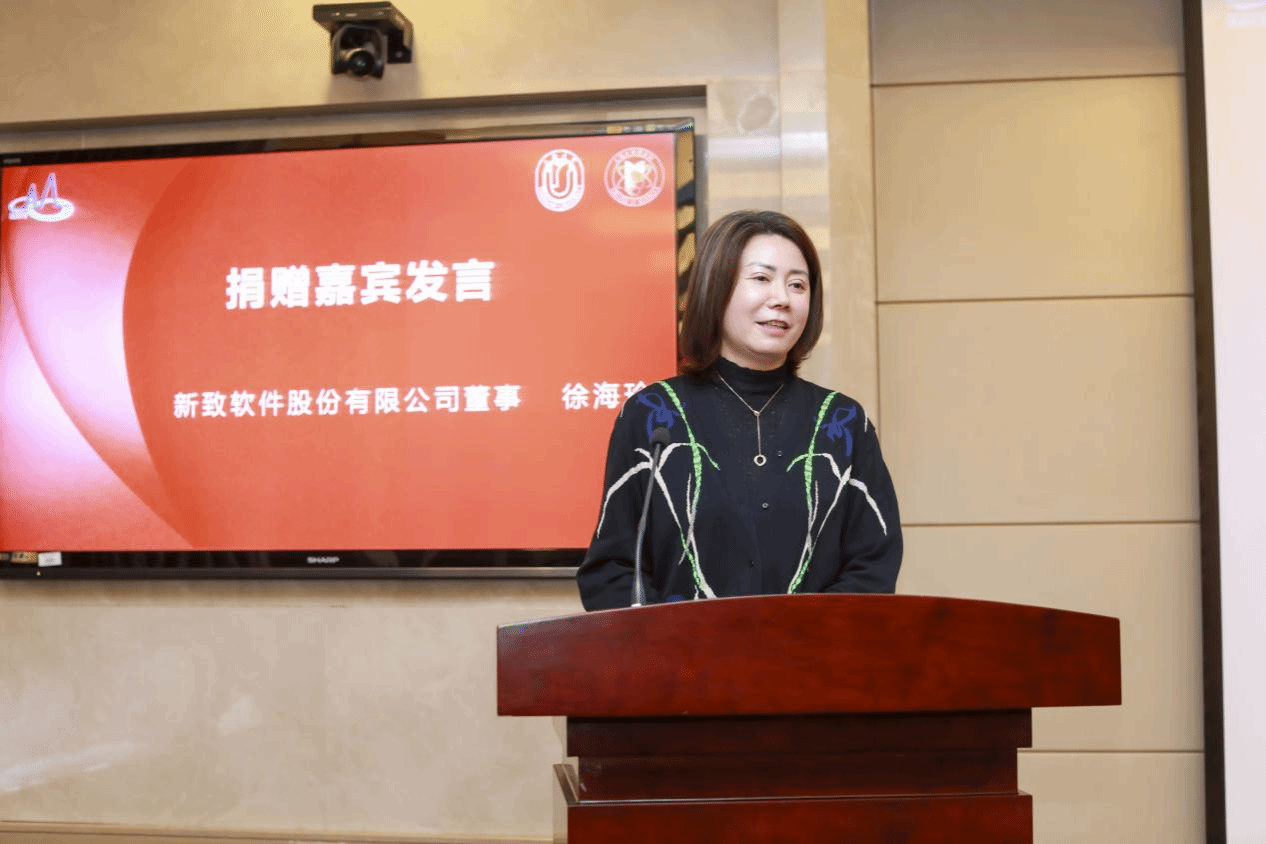 最后,徐海珍女士发表了讲话,向阳阳教育基金的全体获奖师生表示衷心的祝贺,表达了她与郭玮先生对母校和数学系的深厚情谊。步入新时代,机遇与挑战并存,希望数学系青年把智慧、勇气和力量转化为责任、坚守和担当,把个人奋斗融入时代大潮,把自强不息的精神注入血脉,在服务社会、奉献国家的奋斗历程中实现自我的人生价值。