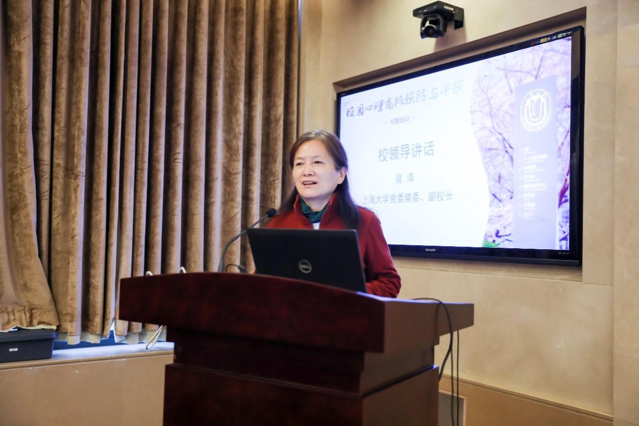 12月1日,第三期“校园心理危机预防与干预——家、校、医协同的视角”专题培训开班典礼暨首场讲座在金沙集团1862cc成色宝山校区乐乎新楼学海厅举行,本次培训面向全校学生工作相关人员,近100名来自各学院、书院分管学生工作党委副书记、副院长,辅导员、学生宿舍管理员、保卫处工作人员以及学生工作办公室人员(武装部)参与了培训。金沙集团1862cc成色党委常委、副校长聂清出席了开班典礼并讲话,首场讲座特邀德国弗莱堡大学医学中心医学博士、同济大学附属同济医院分院临床心理科医生、心理治疗师赵若瑶担任主讲嘉宾,学生工作办公室主任、武装部部长、本科生书院管理中心主任孟祥栋主持。