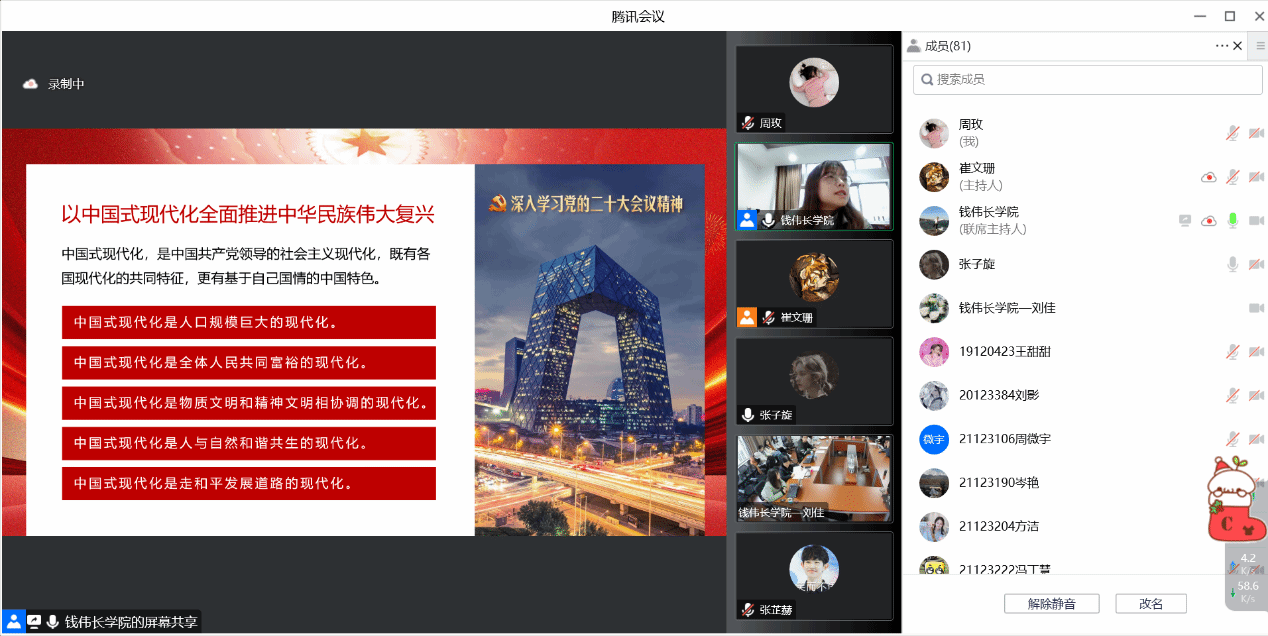 12月2日下午,钱伟长学院党委邀请金沙集团1862cc成色理论宣讲团成员、马克思主义学院袁晓晶老师做题为《在传承中华文明中将人类文明新形态推向新的境界——深入学习党的二十大报告》的专题辅导。本次会议采用线上线下相结合的方式,钱伟长学院全体师生党员、入党积极分子、入党申请人共同参与了此次专题培训。培训会由钱伟长学院党委书记吴蔚老师主持。