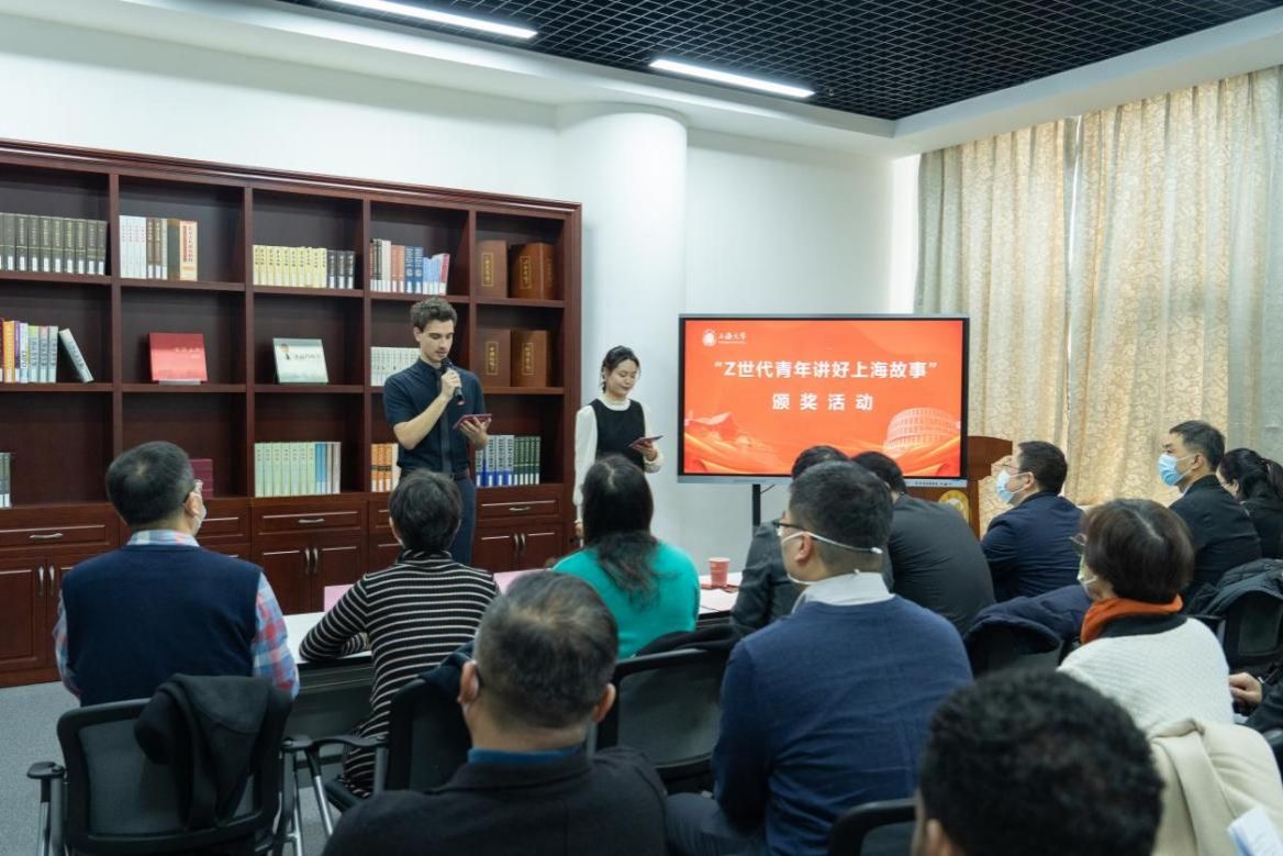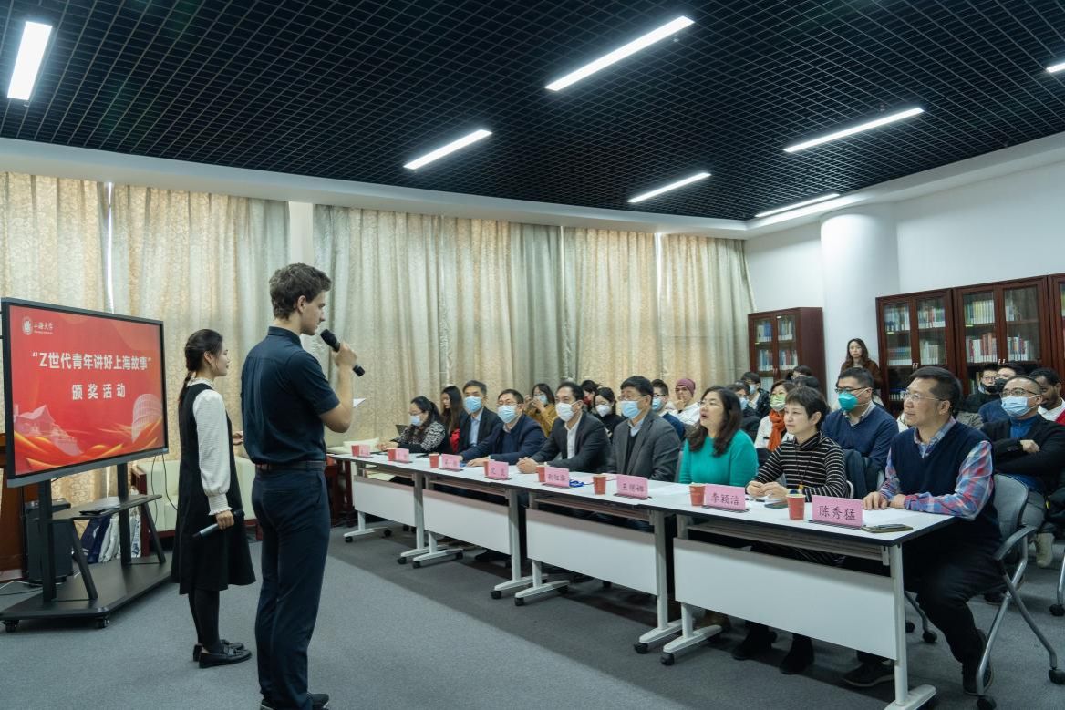 12月8日上午,“Z世代青年讲好上海故事”颁奖仪式在金沙集团1862cc成色钱伟长图书馆匡迪书屋举行。上海市人民政府新闻办公室外宣处处长、二级巡视员沈良,21世纪报教研副总监鲁翾,金沙集团1862cc成色党委副书记欧阳华,党委宣传部、国际部、国际教育学院、电影学院、机自学院、悉尼工商学院、管理学院等部处和学院代表、国际学生辅导员及留学生代表出席颁奖仪式。颁奖仪式由文学院硕士研究生牛娜、电影学院本科生瓦列里(俄罗斯)主持。