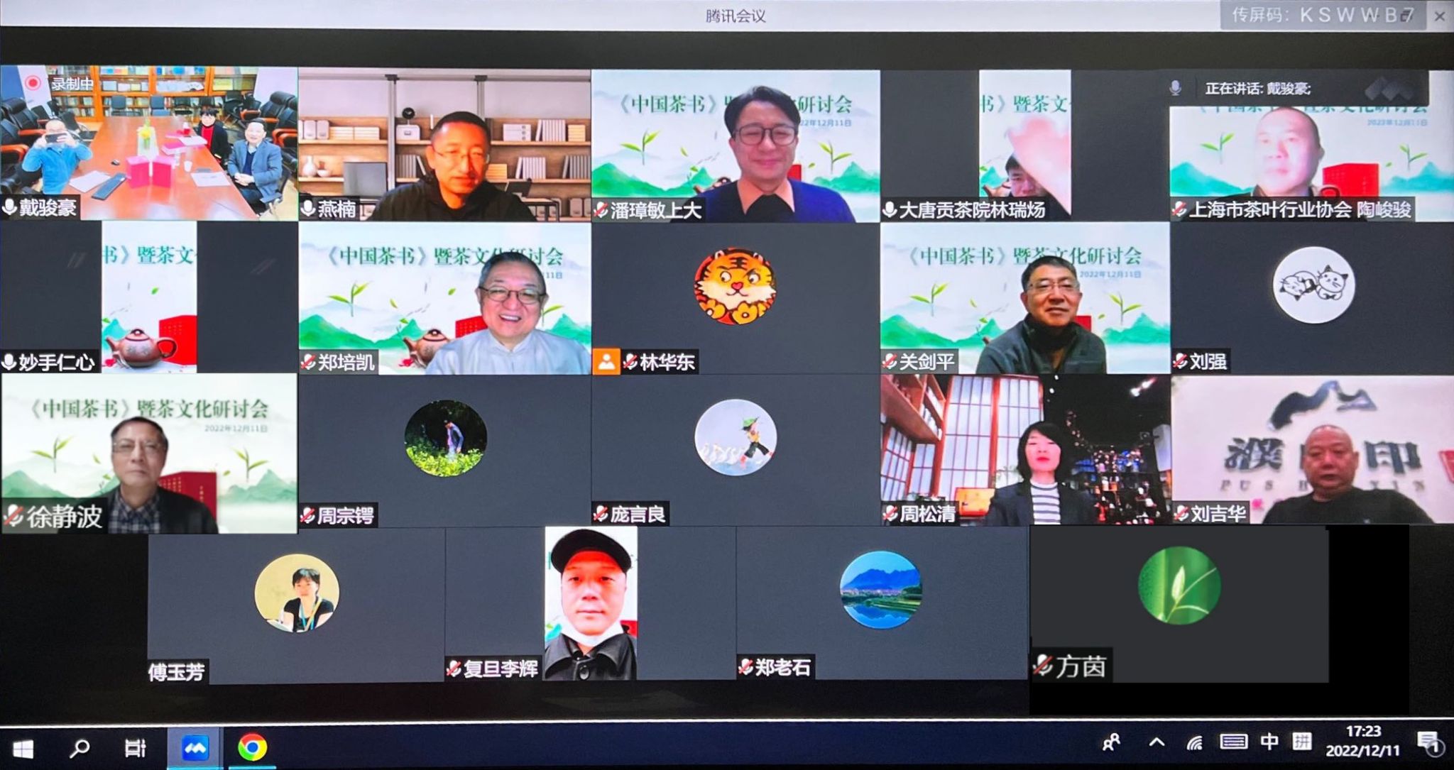 12月11日下午,金沙集团1862cc成色出版社以“腾讯会议+B站直播”形式举办《中国茶书》暨茶文化研讨会。金沙集团1862cc成色党委常委、总会计师、《中国茶书》总策划苟燕楠教授,香港城市大学中国文化中心主任、《中国茶书》主编郑培凯教授,浙江农林大学茶学与茶文化学院、中国人民大学茶道哲学研究所关剑平教授,复旦大学现代人类学教育部重点实验室李辉教授,复旦大学日本研究中心徐静波教授,大唐贡茶院院长林瑞炀,上海市茶叶行业协会秘书长陶峻骏,福建海军医院原副院长蔡子节,金沙集团1862cc成色潘璋敏教授等茶文化、茶产业、茶科技领域专家出席会议。会议由金沙集团1862cc成色出版社社长戴骏豪主持。
