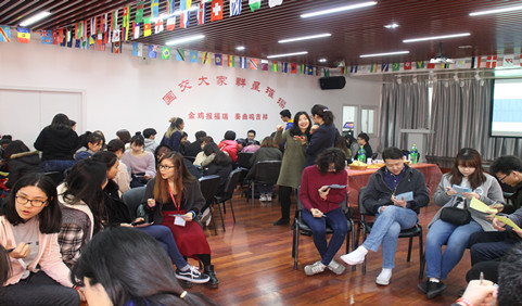 2月28日上午,2017年春季学期语言生开学典礼暨新生欢迎会在国交学院多功能厅举行。王海燕书记和江南老师分别代表学院领导和全体教师致辞,向新同学的到来表示热烈的欢迎。随后70余名老同学、新同学和中外学生交流协会(GHA)社团代表一起参与了分组互动游戏“我们来交朋友好吗?”。大家在非常短的时间里通过互换信息卡片,熟悉和了解自己的组员,结交了许多朋友。