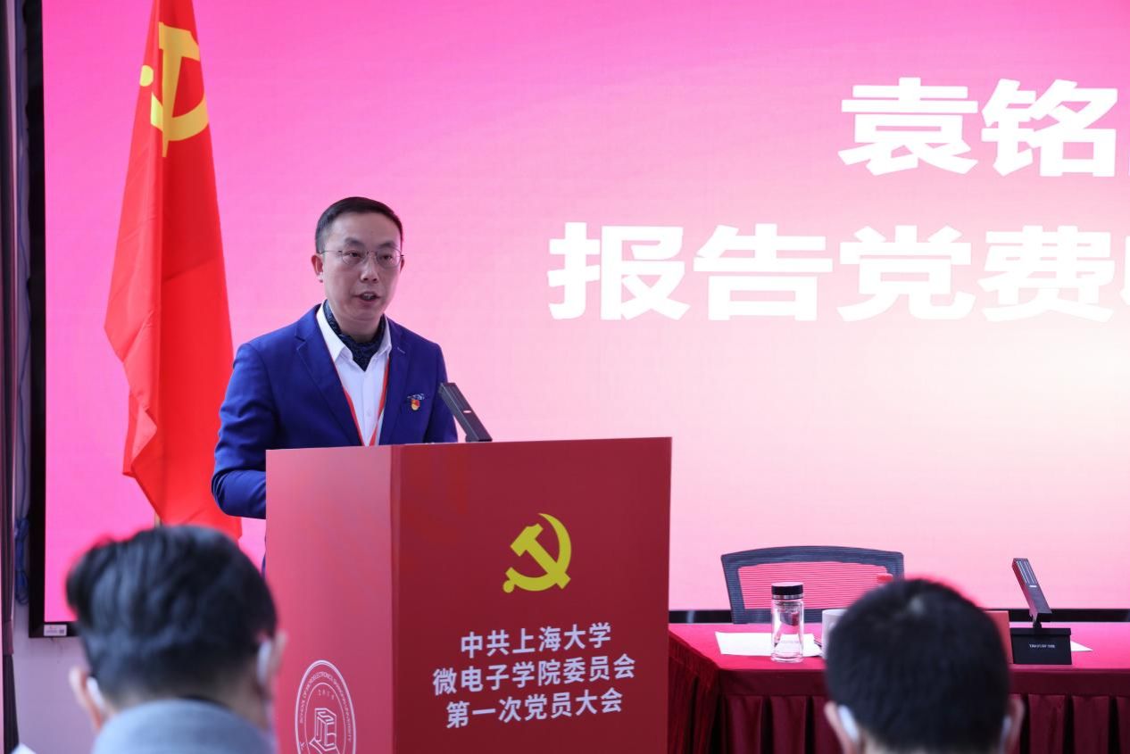 袁铭同志报告了关于党费收缴、使用和管理的情况。经审议,与会党员一致通过了《微电子学院党委党费收缴使用情况报告》。