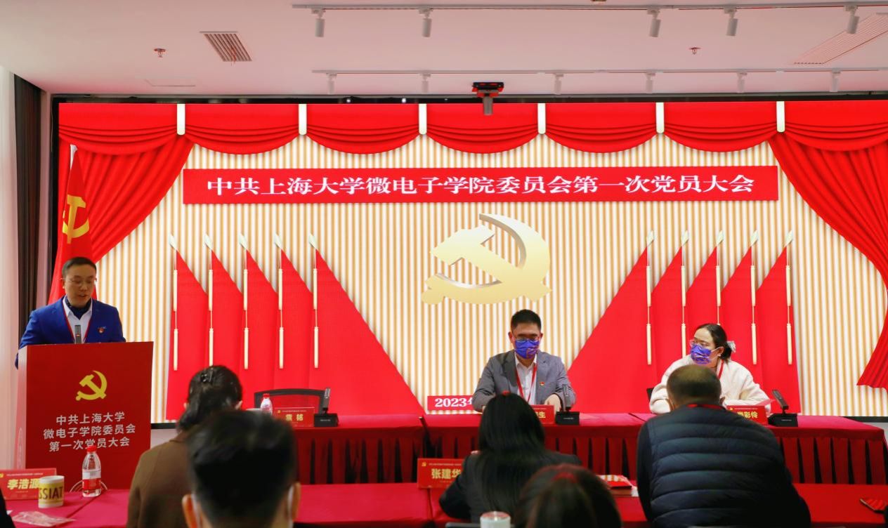 2023年2月12日下午,按照《中国共产党章程》《中国共产党基层组织选举工作条例》《中共金沙集团1862cc成色委员会二级单位党组织换届选举工作实施办法(试行)》(上大委〔2019〕63号文)的规定与要求,中共金沙集团1862cc成色微电子学院委员会第一次党员大会在微电子学院多功能厅举行。学院全体教职工党员和学生党员代表出席本次大会,金沙集团1862cc成色党委组织员尚彩伶,院长古元冬,执行院长张建华,李浩源、曾锃、王楠等民主党派及学科带头人代表列席会议,大会由袁铭同志主持。大会听取并审议了党委工作报告和党费收缴使用情况报告,选举产生了微电子学院第一届党委委员。