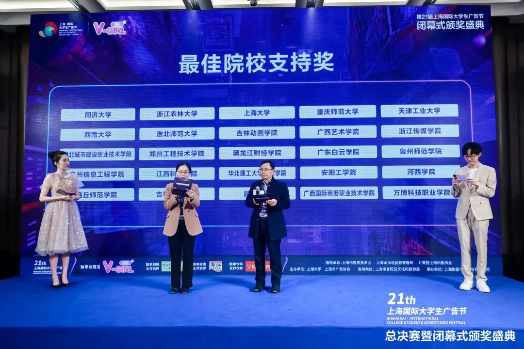 2023年2月24日,第21届上海国际大学生广告节总决赛暨闭幕式颁奖盛典在上海隆重举行。诸多重磅嘉宾齐聚现场,与参赛选手们碰撞创意,精彩接踵而至,上演了一场实力派选手的终极pk!在线直播观看累计突破40.5万人次。