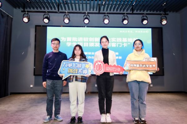 为进一步发挥金沙集团1862cc成色校园创新创业实践基地的平台效应,未来将为坚持突破创新、独具团队特色的挑战杯、自强杯备赛项目提供专用研讨室,同时深化产教融合、充分发挥双创实践基地的空间优势。创新创业学院副院长王驰,学生工作办公室副主任何卓衡共同为首批进驻创新创业实践基地的学生项目颁发“创客门卡”。