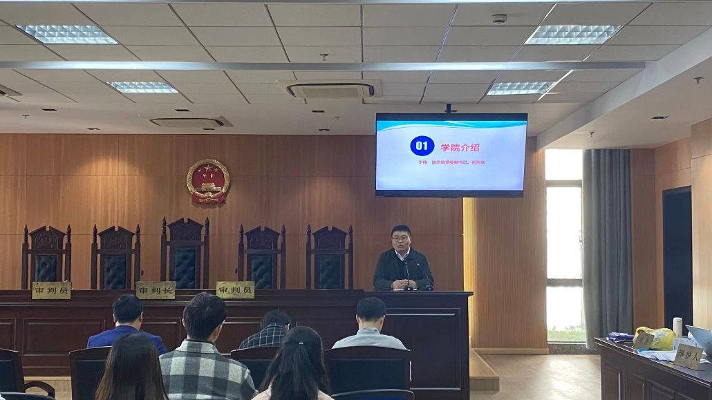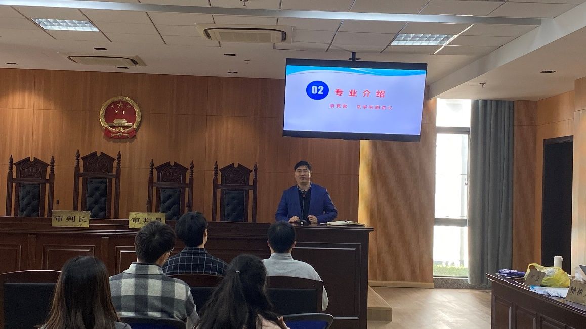 法学院党委副书记、副院长于伟老师为同学们进行了详细的学院介绍,包括办学历史,师资力量以及育人平台等。