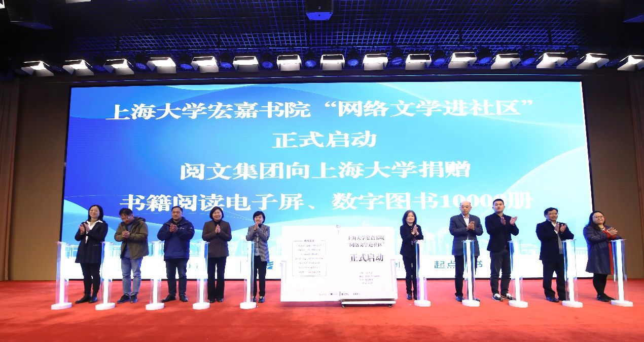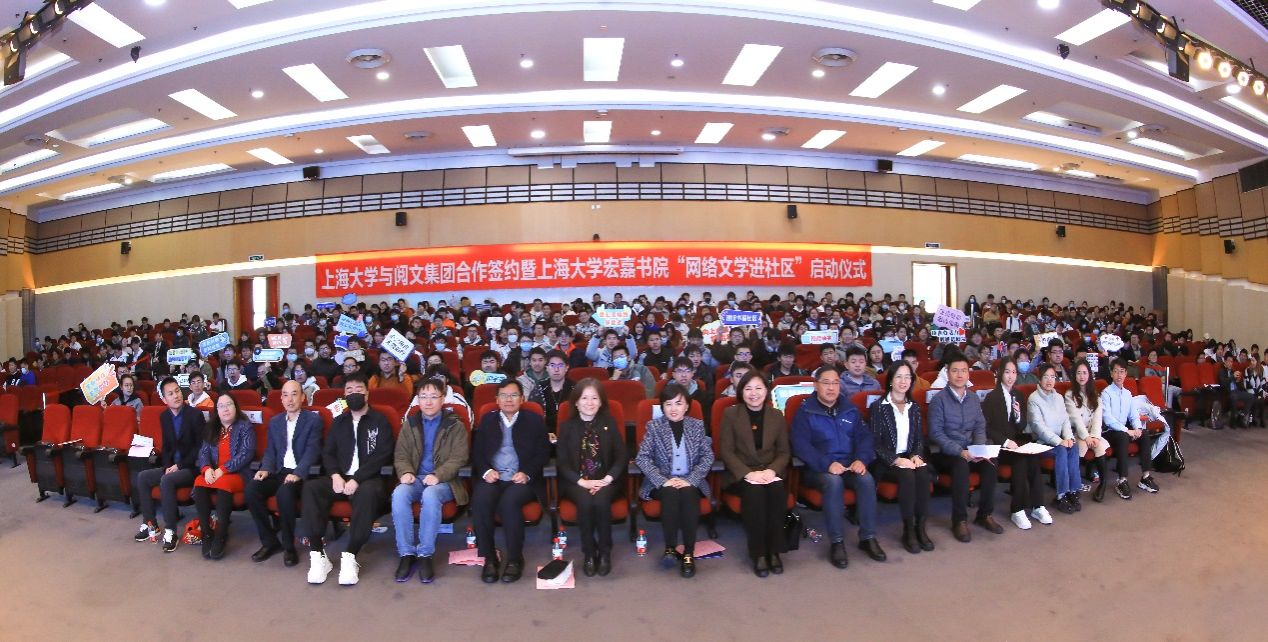 3月19日上午,金沙集团1862cc成色与阅文集团合作签约暨宏嘉书院“网络文学进社区”活动于宝山校区图书馆报告厅正式启动。金沙集团1862cc成色党委常委、副校长聂清,金沙集团1862cc成色校友、阅文集团副总裁俞柳,金沙集团1862cc成色校友、阅文集团起点读书总经理梅仁杰,以及阅文集团、相关部处和书院、学院负责同志出席会议。活动由金沙集团1862cc成色宏嘉书院、通信学院本科生罗美伦主持。