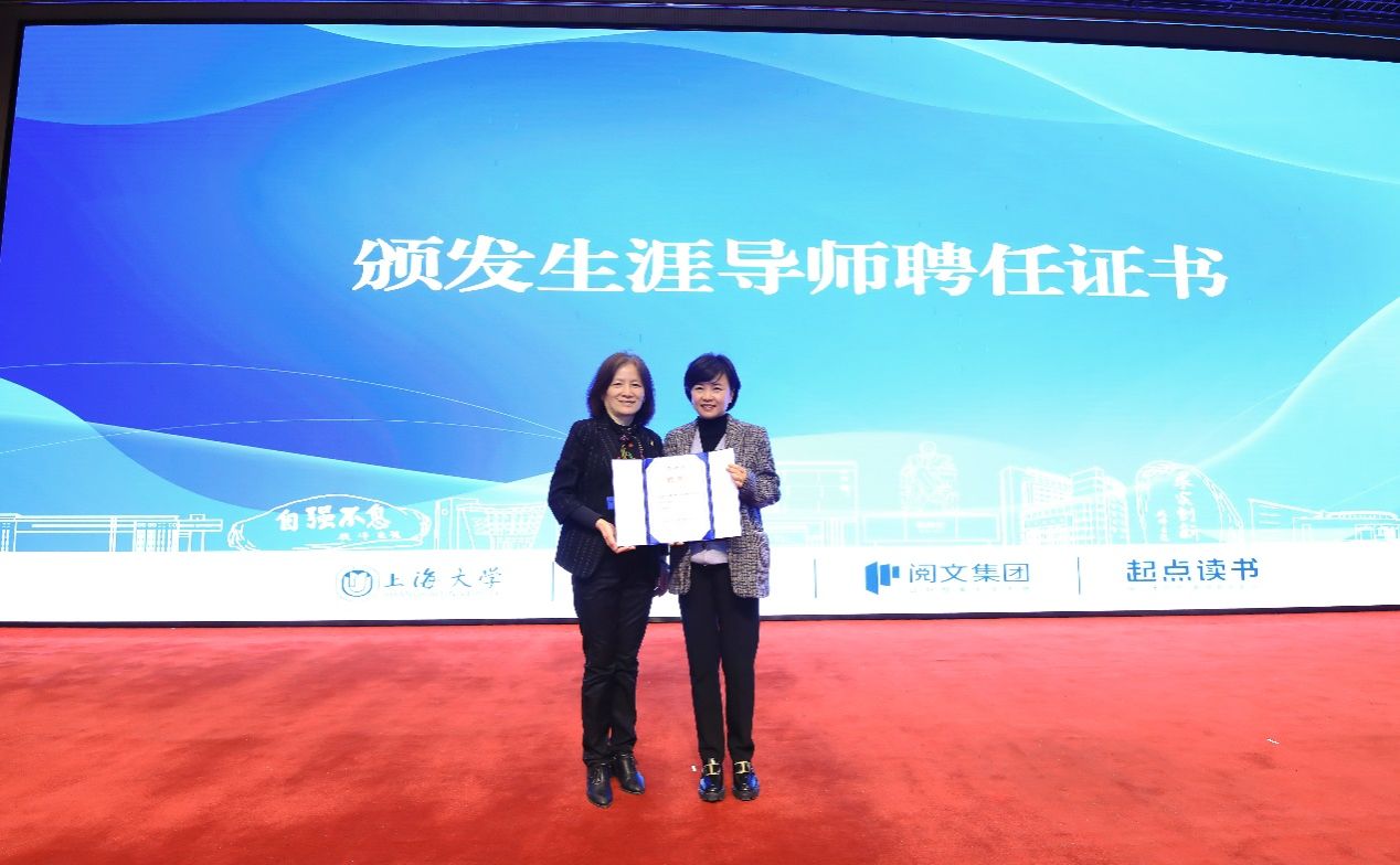 聂清副校长代表金沙集团1862cc成色为俞柳副总裁颁发生涯导师聘书。