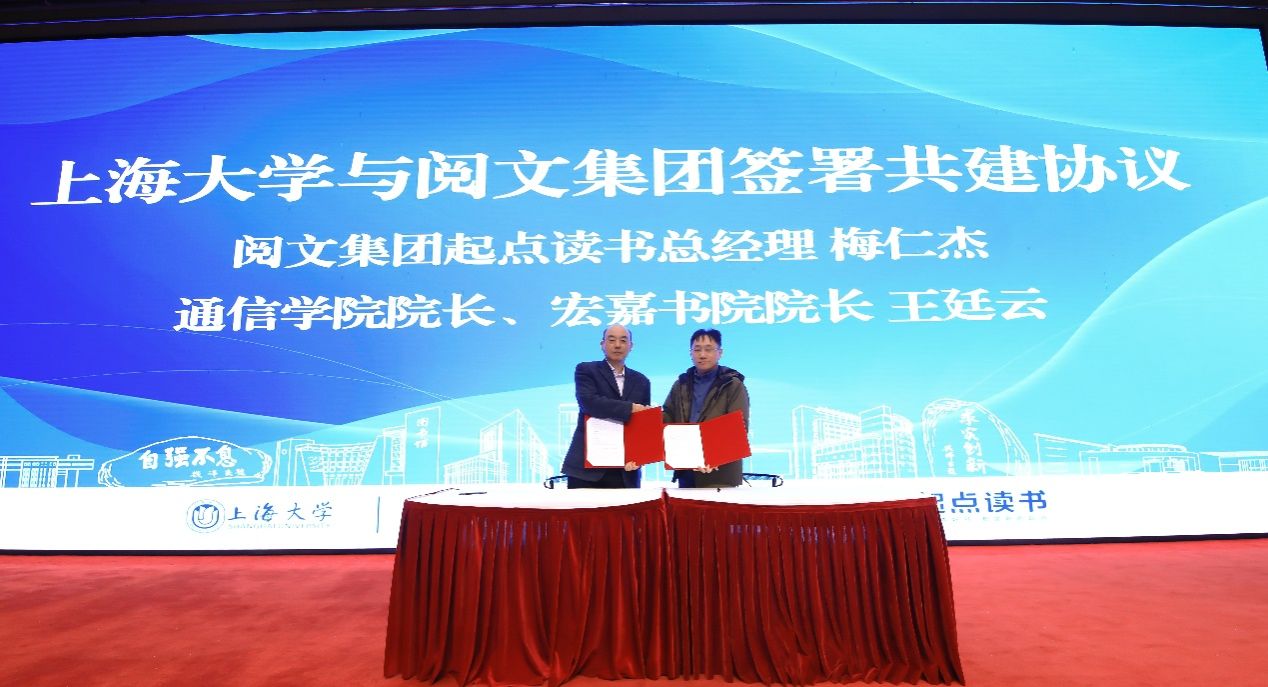 阅文集团起点读书总经理梅仁杰先生,金沙集团1862cc成色通信学院、宏嘉书院院长王廷云代表双方共同签署了《金沙集团1862cc成色与阅文集团合作框架协议》。