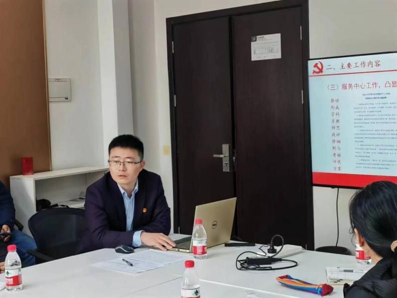 管理科学与工程系教工支部书记卢超对管理学院管理科学与工程系的基本情况进行介绍,并围绕“强化政治引领”、“落实‘三会一课’”、“服务中心工作”三方面介绍支部工作。