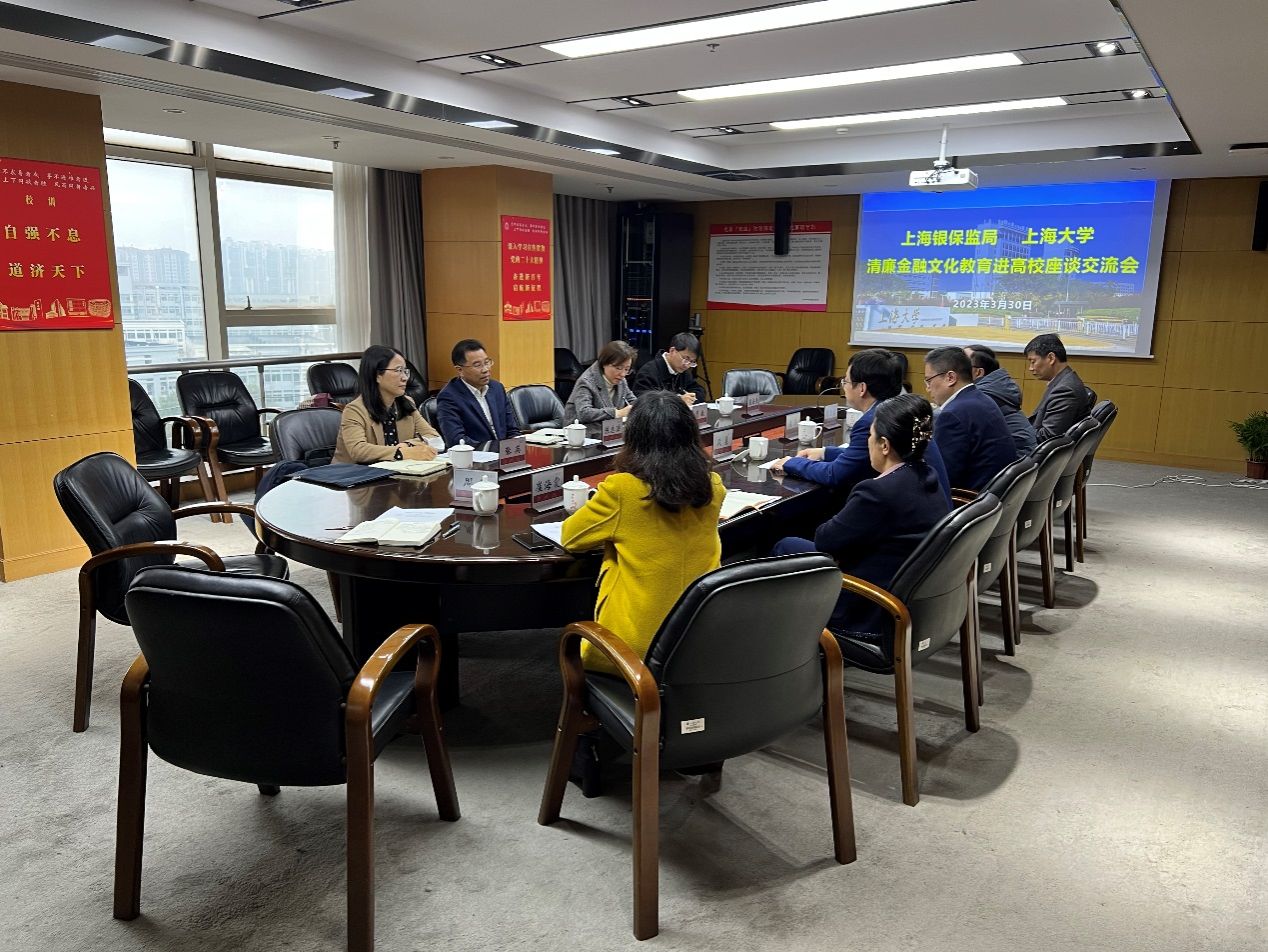 3月30日上午,为推进上海银行业保险业与高校合作共建“清廉金融教育基地”,上海银保监局党委委员、纪委书记陈志法,上海市银保监局纪委办主任贾敏,上海市银保监局纪委办四级调研员张英等一行调研金沙集团1862cc成色并座谈交流。 校党委副书记、纪委书记、市监委派驻金沙集团1862cc成色监察专员段勇,校纪委副书记滕 云,校巡察办常务副主任崔海霞,经济学院党委书记孟添,党委副书记、副院长、纪检员冯玉鑫,副院长刘康兵、周思出席座谈会。座谈会由金沙集团1862cc成色经济学院党委书记孟添主持。