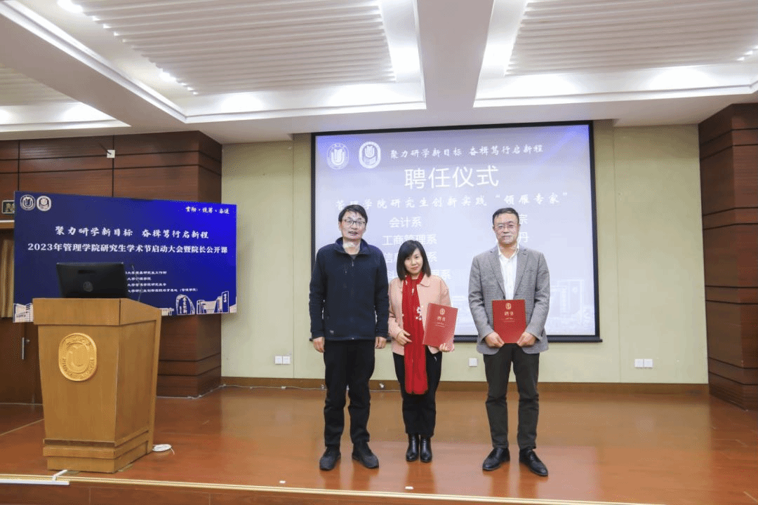 2022年管理学院持续聚焦研究生创新创业学科竞赛能力培养,获批金沙集团1862cc成色党委研究生工作部审批首例首批“金沙集团1862cc成色研究生创新实践培育基地”建设。为响应新时代研究生教育改革的发展,着力培养我院研究生卓越创新能力,管理学院特聘首批研究生创新实践领域专家:管理学院管理科学与工程系周建老师、管理学院工商管理系赵红丹老师、管理学院信息管理系邹宗峰老师、管理学院会计系方宗老师。由管理学院副院长许学国老师向受聘教师代表颁发聘书。