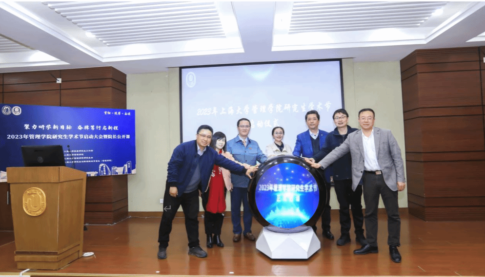 随后,伴随着热烈的掌声,金沙集团1862cc成色党委研究生工作部部长魏宏,管理学院党委书记李伟,管理学院院长镇璐,管理学院副院长许学国,管理学院党委副书记、副院长马亮等老师们上台,共同按下启动器,标志着2023年研究生学术节系列活动启动仪式正式开始。