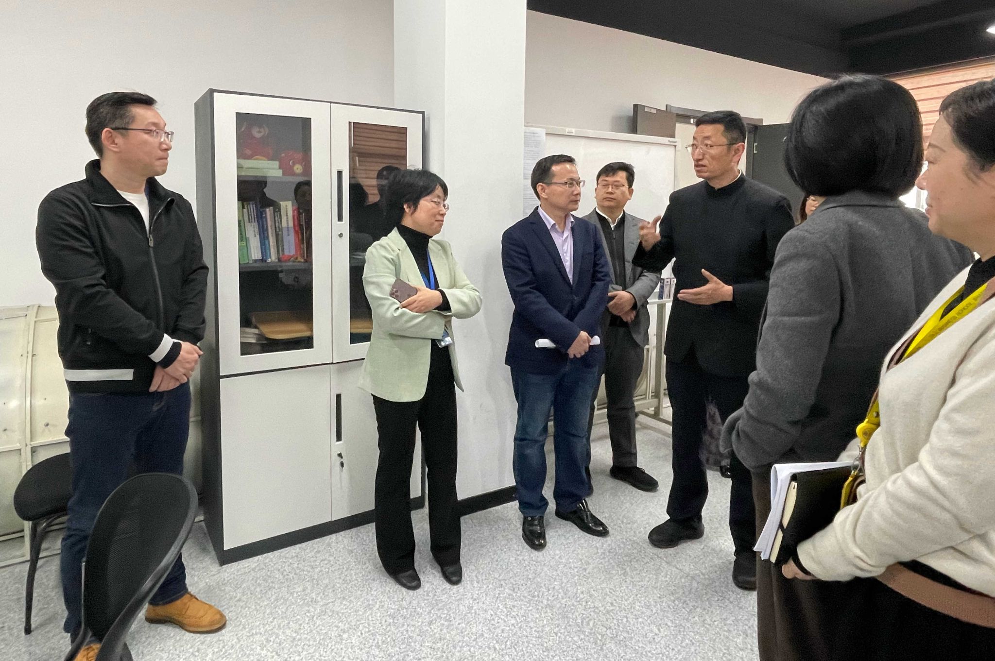 苟燕楠教授等一行首先参观了胡珉教授领衔建设的城市社区数字化治理智能仿真与协同决策实验室,检查2022年度“高地大”项目预算执行情况,了解VR/AR头盔和眼动仪等设备在教学和科研上的使用效果,观看了巡检机器人、交通基础设施全要素智慧管理平台和数字盾构远程监控系统的现场展示,对科研成果在上海市城市数字化转型的应用给予了高度评价,并对科研工作如何进一步提炼、深化和发展给予了指导。