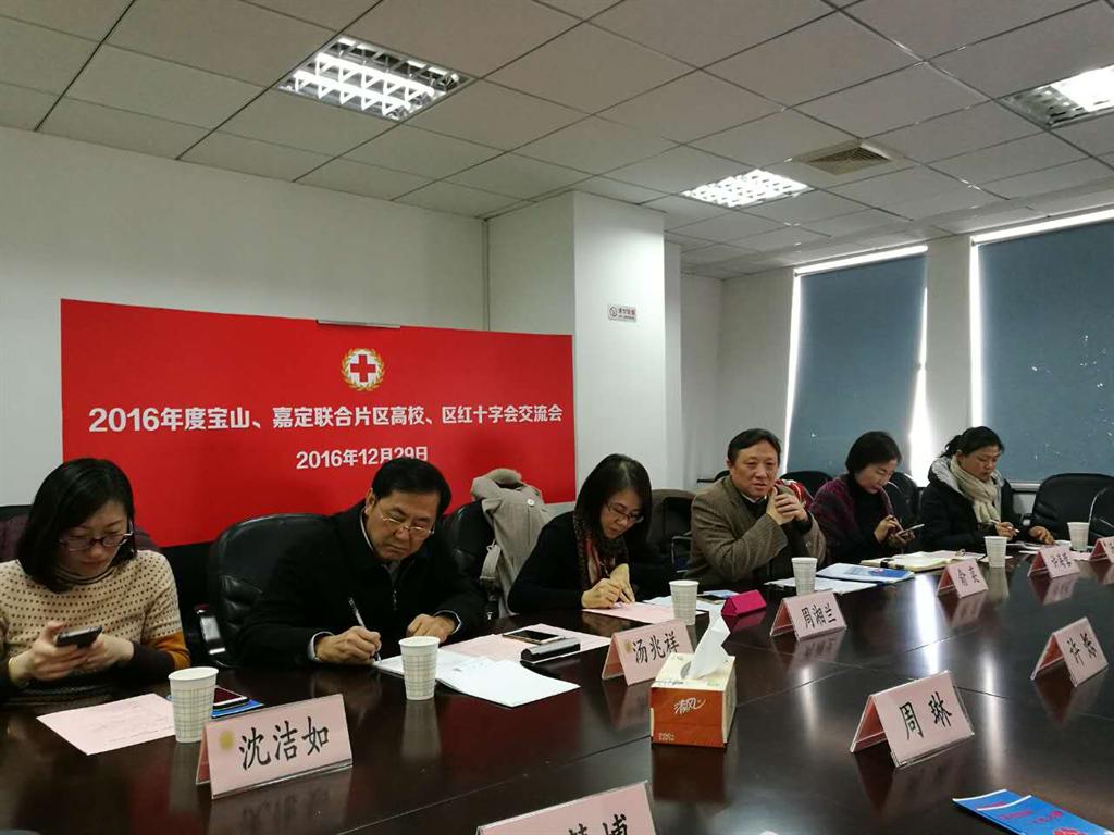 12月29日上午,2016年度宝山、嘉定联合片区高校、区红十字会交流会在金沙集团1862cc成色宝山校区A404举行。市红十字会青少年工作部部长周湘兰、副部长汤兆祥、宝山区红十字会副会长俞奕、嘉定区红十字会秘书长许海蓉、市红十字会青少年工作部沈洁如、宝山区红十字会汤忆华、金沙集团1862cc成色红十字会秘书长、校团委书记许烁以及各区、高校红十字会负责同志出席会议。会议由金沙集团1862cc成色红十字会副秘书长、校团委副书记沈青松主持。