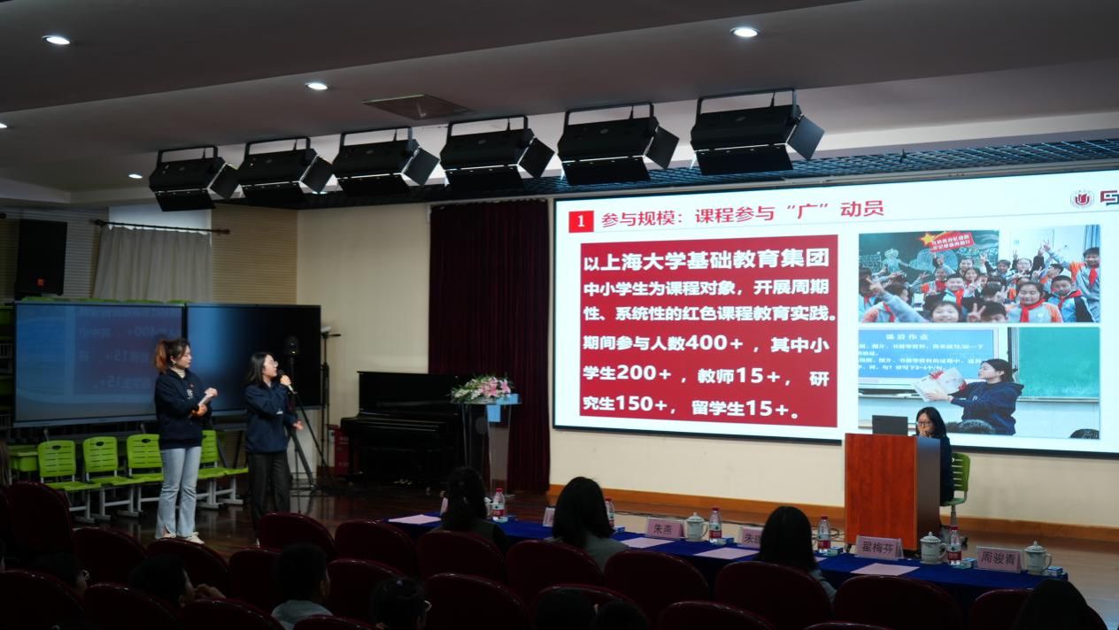 随后,金沙集团1862cc成色新闻传播学院研究生红色文化团队进行了项目成果汇报。项目缘于2022年暑假社会实践项目,希望整合红色资源、创新表达形式,为中小学思政教育注入新活力。该项目依托上海市、金沙集团1862cc成色的红色资源,传承红色血脉,设计了一系列课程读本,以及短视频、条漫、广播剧等红色IP,并在与附小教师的多次研讨、修改后,团队正式开始了在上大附小开展红色文化沉浸式思政课程实践。该课程以每两周一次的安排与上大附小四年级同学们见面,并通过字词教学、故事讲述、情景演绎、互动提问、读本延伸、实地寻访等方式开展。在实践过程中,团队搭建了核心统筹组、课程设计组、研学讲师组、宣传拍摄组联动保障课程运营,并设计了核心素养目标评价体系,与附小老师、学生进行周期性的教学成效评价,持续优化课程。截至目前,课程辐射人群广度持续扩大,累计参与人数近400人,其中小学学生近250人,讲课、宣传拍摄、统筹等工作同学近150人,学校教师15余人。同时在课后的评价反馈中,学生群体对该课程整体满意度较高,并对持续参加后续的课程表达了强烈的意愿。团队计划形成以“建党精神”、“劳模精神”、“科学家精神”等为主题的课程体系,目前已完成瞿秋白、杨之华两个人物的课程教学。接下来将聚焦学习宣传贯彻党的二十大精神,围绕中国共产党的精神谱系进行课程内容设计,并针对不同学段的学生进行分层分类系统性的备课,发挥新闻传播专业优势,讲好中国故事,传播好中国声音。