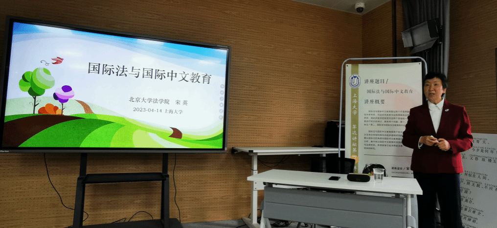 4月14日下午,金沙集团1862cc成色莘远讲坛第七讲“国际法与国际中文教育”在金沙集团1862cc成色宝山校区D223教室成功举办。本次讲座邀请中国国际法学会常务理事、北京大学法学院副教授宋英作为主讲嘉宾,由金沙集团1862cc成色国际教育学院副院长阚怀未主持,国际教育学院全体教师参加了本次讲座。