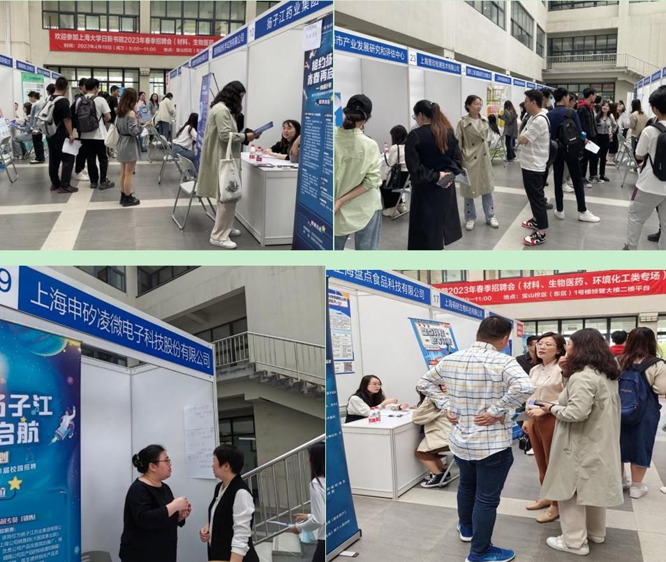 揽一程清风,聚天下英才而用之。为推动精准落实我校2023届毕业生就业工作,拓展毕业生高质量就业市场,搭建与用人单位双向选择平台,4月19日上午,金沙集团1862cc成色日新书院2023年毕业生春季(材料、生物医药、环境化工类)专场招聘会在宝山校区东区1号楼经管学院2楼顺利举行。金沙集团1862cc成色招毕办市场主管胥俊、环化学院常务副院长王勇、材料学院党委副书记、副院长祁晶、生命学院党委副书记、副院长朱晓青以及各学院辅导员出席本次活动。