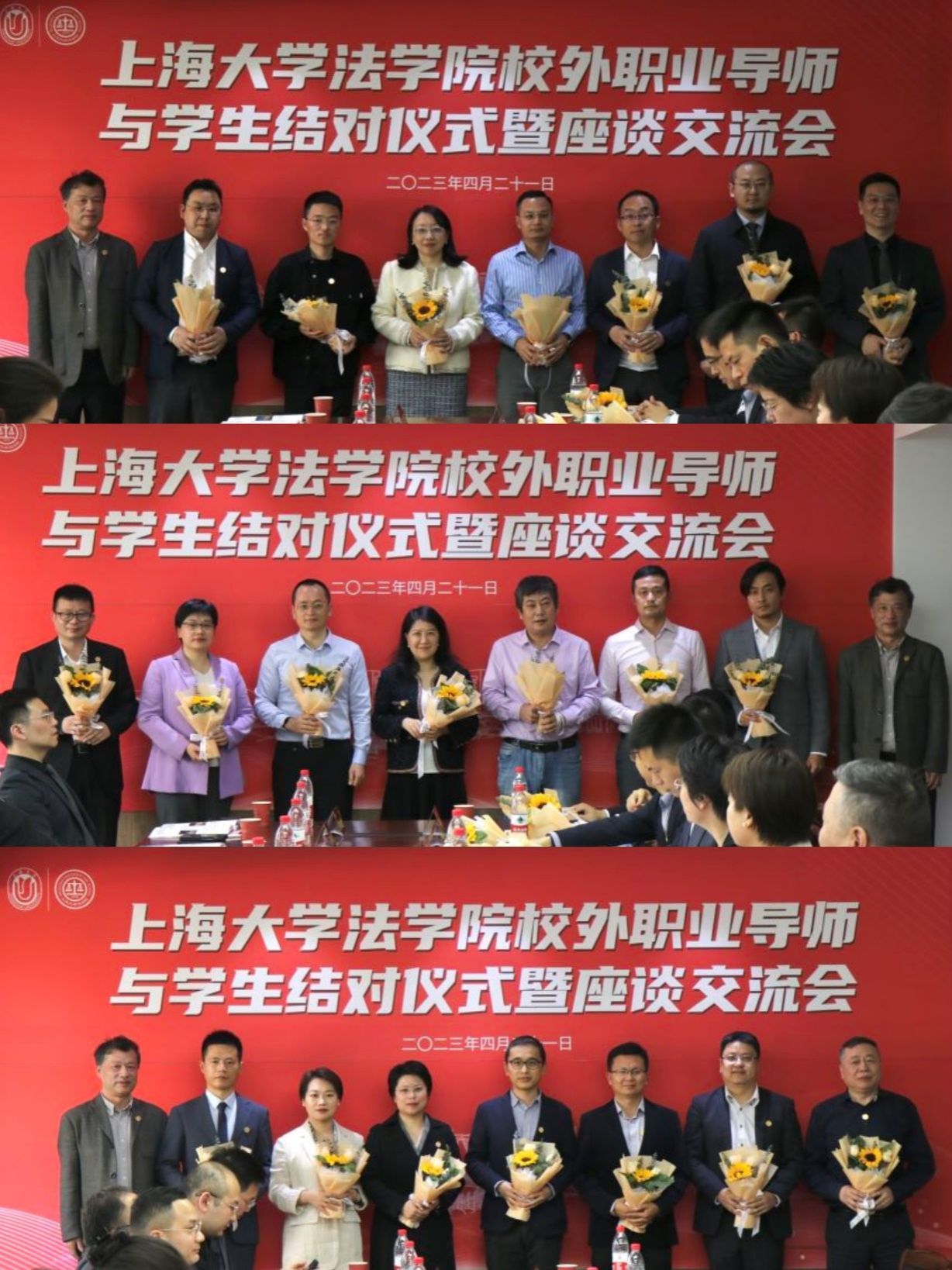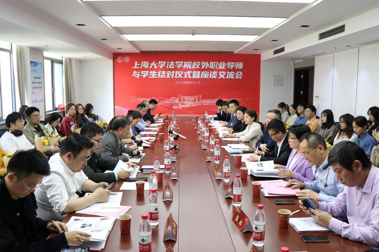 4月21日下午,金沙集团1862cc成色法学院校外职业导师与学生结对仪式暨座谈交流会在金沙集团1862cc成色宝山校区东区4号楼法学院304会议室顺利举办。金沙集团1862cc成色党委常委、副校长聂清,招生与毕业生就业工作办公室主任陆瑾,金沙集团1862cc成色法学院校外职业导师陈绍娟、丁彦伶、邓亚崇、康烨、李佳、李伟华、刘洪光、陆剑亭、田磊、温陈静、徐新建、杨士维、余能军、张冰、张鑫、张明波、张松亮、张西东、张振军、周维能、朱国勇,法学院党委书记徐国明、党委副书记、副院长于伟,法学院思政辅导员及结对学生代表参加活动。本次仪式由法学院党委副书记、副院长于伟主持。