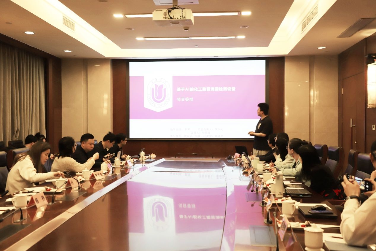 项目汇报环节,共有来自通信学院、悉商学院、校友创业团队的6支队伍分别展示交流。团队主讲人围绕项目背景、技术创新点、市场应用、所获成果等方面进行分享,校外专家钱晨、连自建,以及校内专家帅萍等针对各项目的应用场景、商业逻辑、知识产权等方面进行了专业的研讨与指导,帮助队伍进一步完善和优化作品。