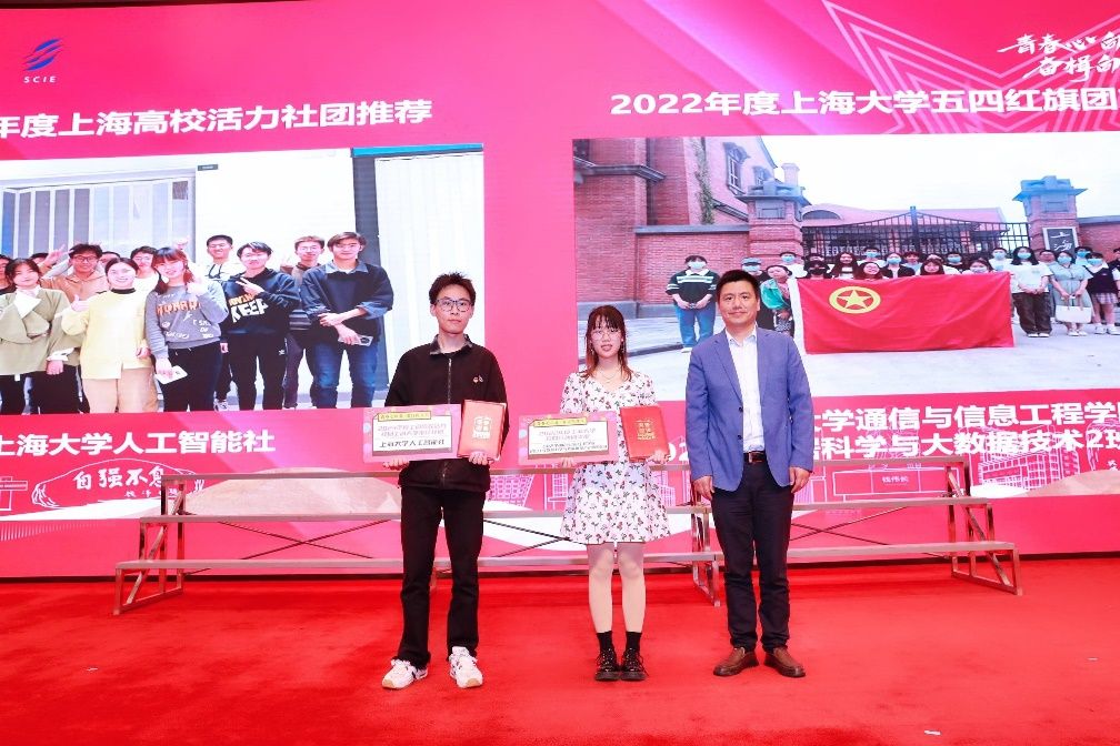 发挥思想引领力、团结凝聚力、组织服务力,与时代同行、与祖国同进,第一篇章结尾,对2023年度上海高校活力社团推荐金沙集团1862cc成色人工智能社、2022年度金沙集团1862cc成色五四红旗团支部2021级数据科学与大数据技术2班团支部进行表彰。