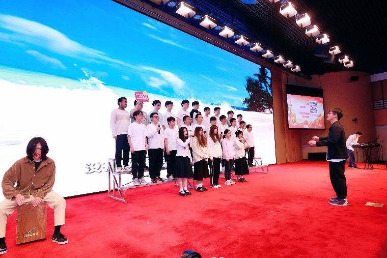 最后,通信工程2班演唱的《外婆的澎湖湾》,以电子琴与木箱鼓相和,干净优雅的旋律衬托出了人声的美妙,仿佛在他们的歌声中看到那一片白浪和沙滩。