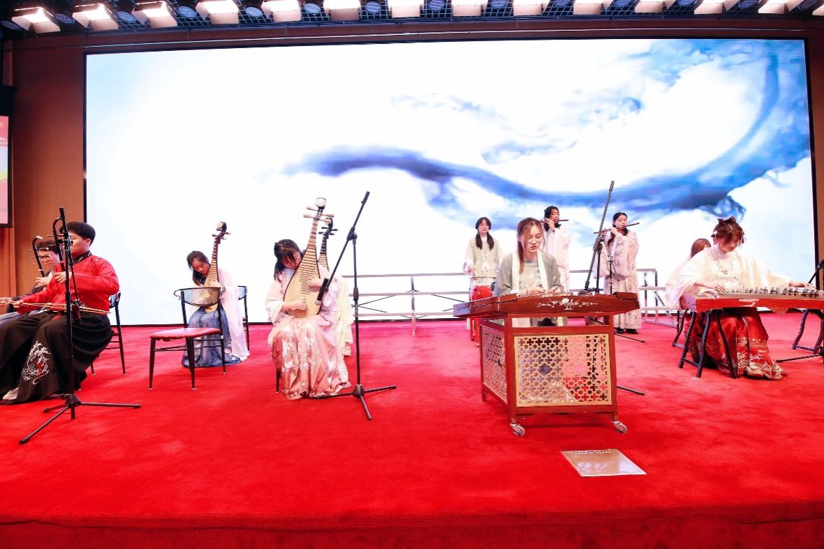 金沙集团1862cc成色笛箫协会带来曲目《双面燕洵、十二神肖》,鼓声由弱渐强,琵琶清脆,二胡嘹亮,笛声悠扬,在演奏者的手下中华艺术瑰宝的美好展现得淋漓尽致。