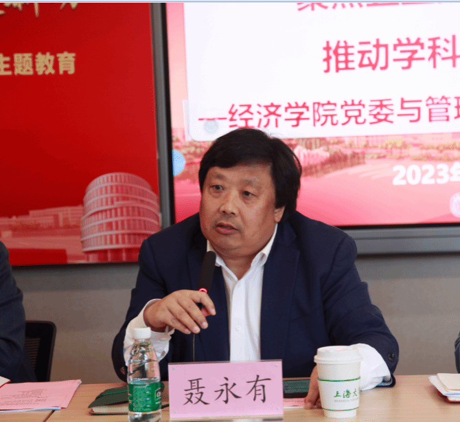 会议伊始,根据主题教育精神坚持读原著学原文悟原理。经济学院党委书记孟添围绕习近平总书记在《求是》杂志发表的重要文章“不断做强做优做大我国数字经济”进行领学,结合党的二十大报告的内容,他从高度重视与发展态势、意义研判以及面向未来如何做强做优大三个方面,重点论述了如何不断做强做优做大我国数字经济。随后,经济学院与管理学院党委代表分别介绍学院学科发展与规划。管理学院党委副书记、院长镇璐以《制度激励,守正创新——上大管理学科发展与规划》为题对学科发展现状进行回顾,提出了未来发展规划和实施路线。经济学院战略管理委员会主任殷凤围绕《应用经济学学科建的总结和思考》进行汇报。