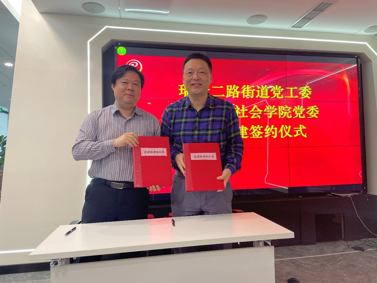 为推动学习贯彻习近平新时代中国特色社会主义思想主题教育走深走实,黄浦区瑞金二路街道党工委书记任伟峰与金沙集团1862cc成色社会学院党委副书记、院长黄晓春于5月17日下午共同签订党建联建协议。通过签订党建联建协议,瑞金二路街道与金沙集团1862cc成色社会学院将共筑组织基础、共享优势资源、共建育人平台,开启政校融合发展新篇章。