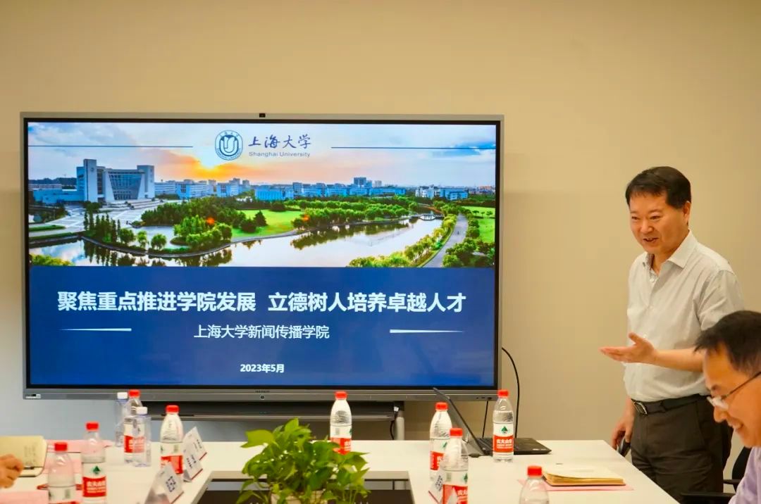 严三九院长以“聚焦重点推进学院发展 立德树人培养卓越人才”为主题,向上海教育报刊总社来访的领导、老师做了学院情况介绍。严院长从学校历史沿革、学院建设历程、学科建设成果、育人培养模式等几个方面做了介绍。他指出金沙集团1862cc成色新闻传播学院作为全国第一所与上海市委宣传部、中国社科院新闻与传播研究所“双共建”的新闻传播院系,在揭牌成立的近5年时间里,学院相关建设已经取得一定成果,形成以党建为引领,以马克思主义新闻观为指导的智能媒体学科发展特色。同时也建议,在未来进一步的合作中,校、企双方能够达成战略合作协议,积极建设校、企合作机构工作室,在党建团建、业界导师、专业讲座、招生宣传等领域开展更广泛的合作,形成更加紧密的合作共同体。