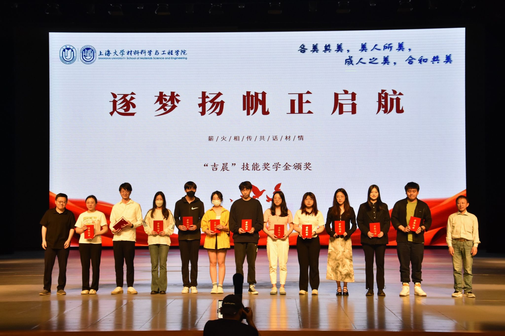 逐梦扬帆正启航,活动现场还颁发了由上海吉晨卫生后勤服务管理有限公司资助的“吉晨”技能奖学金、“吉晨”励志奖学金,麦加芯彩新材料科技(上海)股份有限公司资助的“麦加”奖学金,以及上海日之升科技有限公司资助的“日之升”奖学金,并邀请84级校友、上海吉晨卫生后勤服务管理有限公司董事长黄晨为大家介绍设立奖学金的初衷。