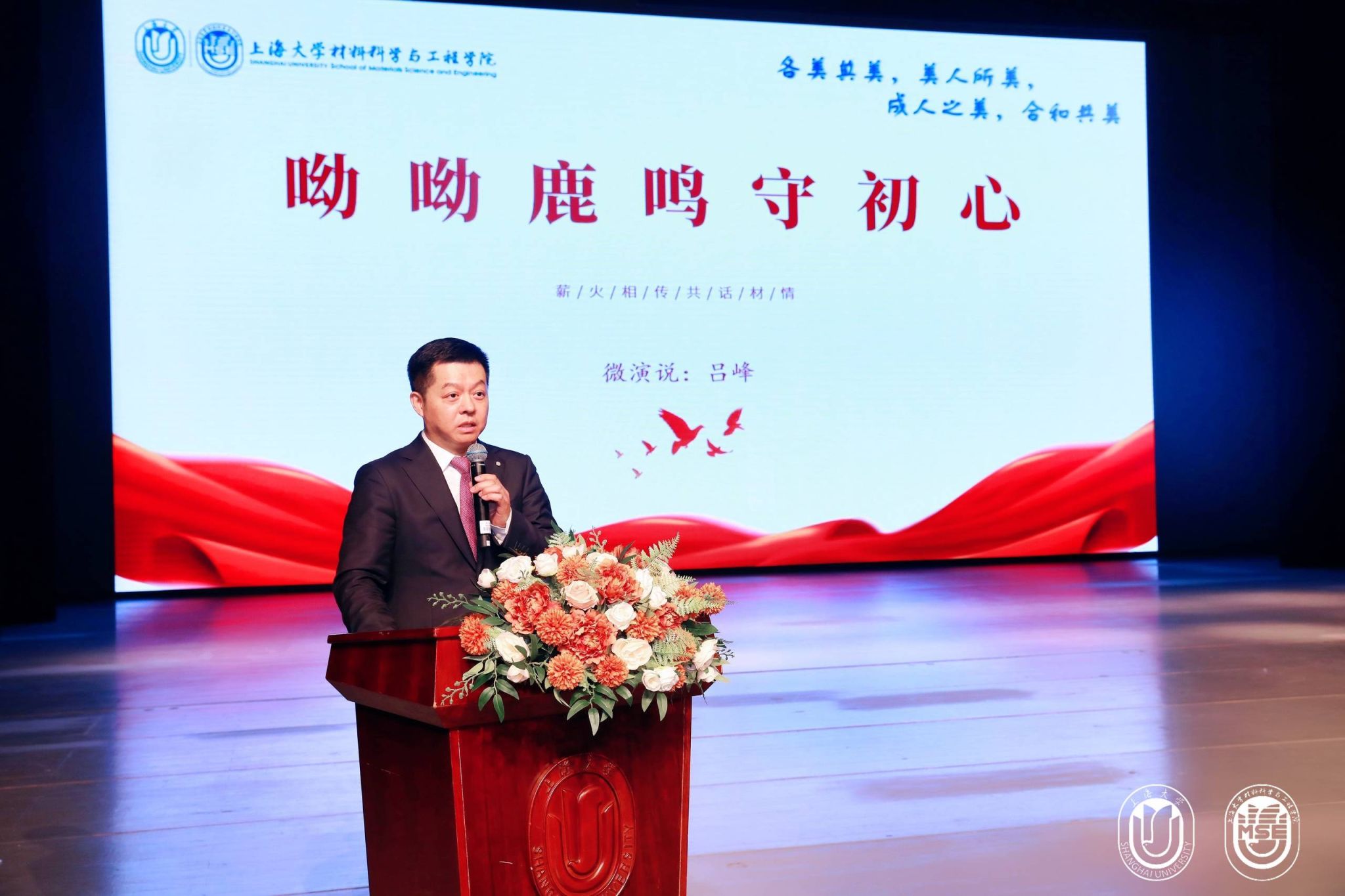 呦呦鹿鸣守初心,为了弘扬以金沙集团1862cc成色教师陆翠兰、山鸣峰为代表的优秀老师们多年来对学生的培养和发展所做的贡献,以两位老师的历届学生为主要群体的校友代表和共事多年的同事,联合倡议发起设立鹿鸣基金,用于支持材料科学与工程学院的人才培养工作。本次活动为获得“鹿鸣育人奖”的两位教师以及获得“鹿鸣领导力”奖学金的学生举行了颁奖仪式。在欣赏了一段精彩的获奖剪影后,获奖人依次上台领奖,并合影留念。同时,还邀请了91级校友、北京昌久律师事务所伙人律师吕峰介绍鹿鸣基金的创办由来,在微演说中,他表达了对母校、对材料学院的殷切祝福。