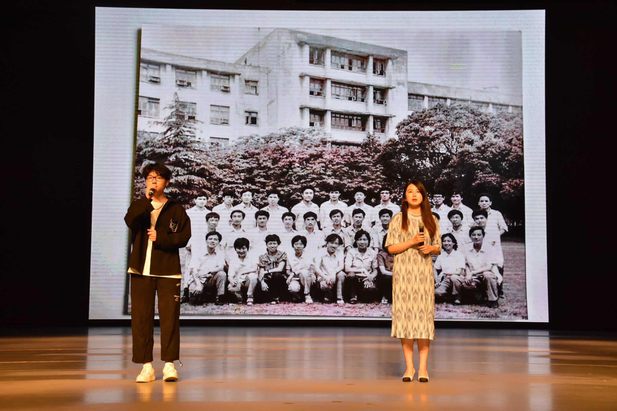 首先是郝一帆、邵冠兰同学为大家带来歌曲《飞云之下》,在悠扬的歌声中,校友们一幕幕精彩瞬间缓缓展现,一张张老相片,瞬间将大家带回了那斗志昂扬的青春岁月。