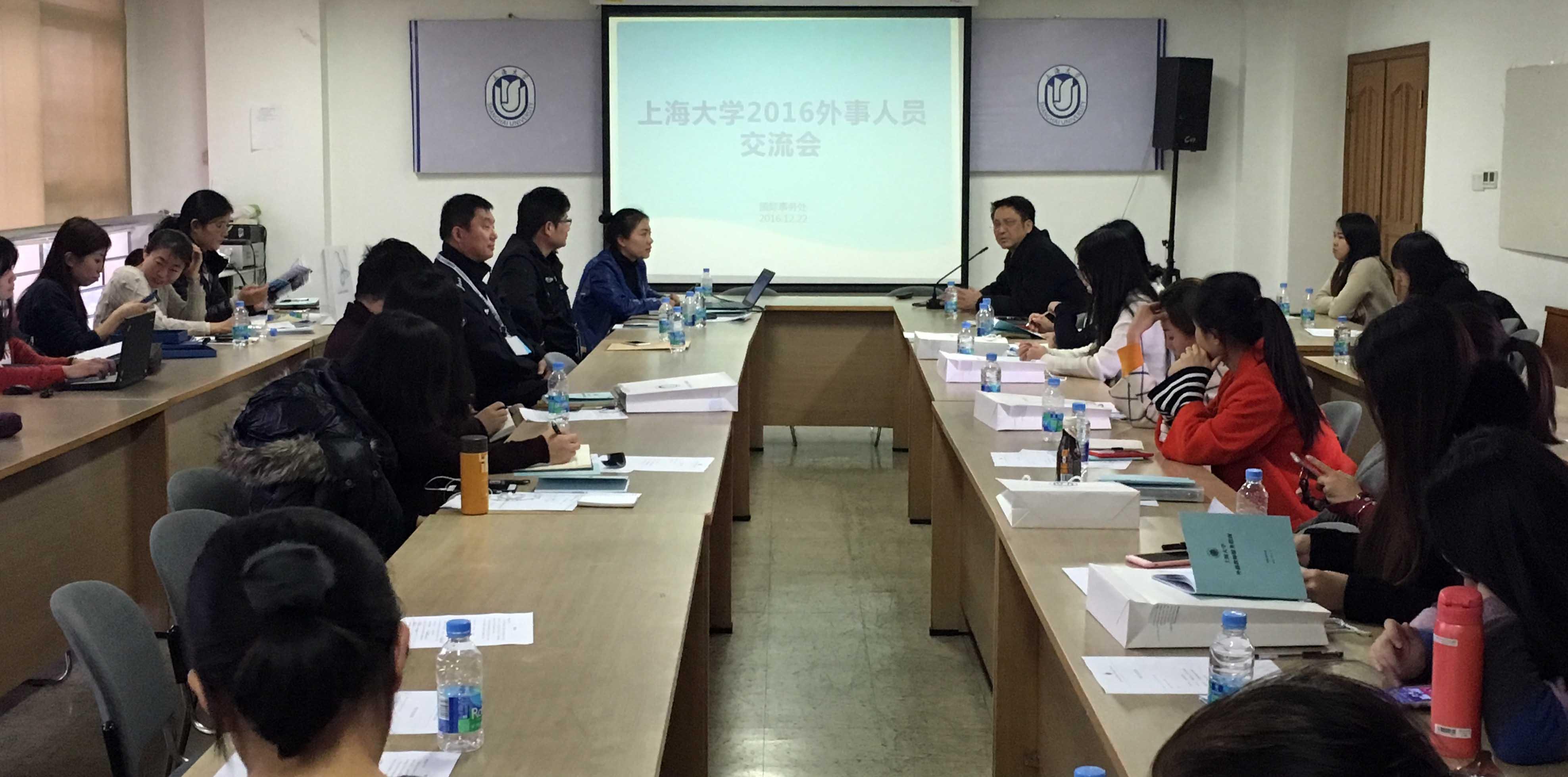 2016年9月,国家外国专家局下发了“关于印发外国人来华工作许可制度试点实施方案的通知”(外专发〔2016〕151号),将“外国人入境就业许可”和“外国专家来华工作许可”整合为“外国人来华工作许可”(以下简称“两证整合”),于2016年10月至2017年3月在上海等10个试点地区开展外国人来华工作许可制度试点工作。为贯彻落实国家外国专家局推进“两证整合”的工作精神,方便学校各学院/部门的外事工作人员了解相关新政,12月22日下午,国际事务处组织召开了“金沙集团1862cc成色2016外事工作人员交流会”,国际事务处万旺根处长、上海市出入境管理局王韬警官、王波警官以及来自28个学院/部门的外事秘书参加了本次会议。