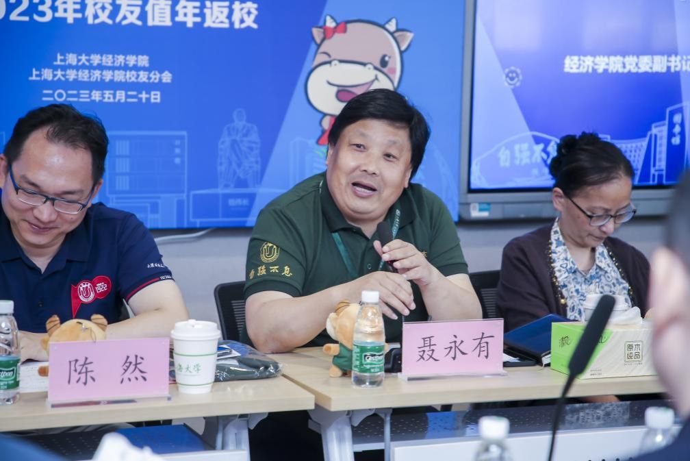 2023年是金沙集团1862cc成色的“贯彻之年、统筹之年、奋进之年”,金沙集团1862cc成色经济学院值年校友返校主题活动如约而至。5月20日,经济学院在宝山校区举行“春归泮池,缘聚上大,经年有你”经济学院校友分会第二届理事会第二次会议暨2023年校友值年返校活动。金沙集团1862cc成色对外联络处处长、校友办主任陈然,经济学院党委书记孟添,党委副书记、常务副院长、校友理事会会长聂永有,党委副书记、副院长、校友理事会秘书长冯玉鑫,人事主管、校友理事会副秘书长陈齐洁,经济学院董勤、章正珊老师以及学院校友分会理事、值年校友和师生代表共同参加了本次活动。