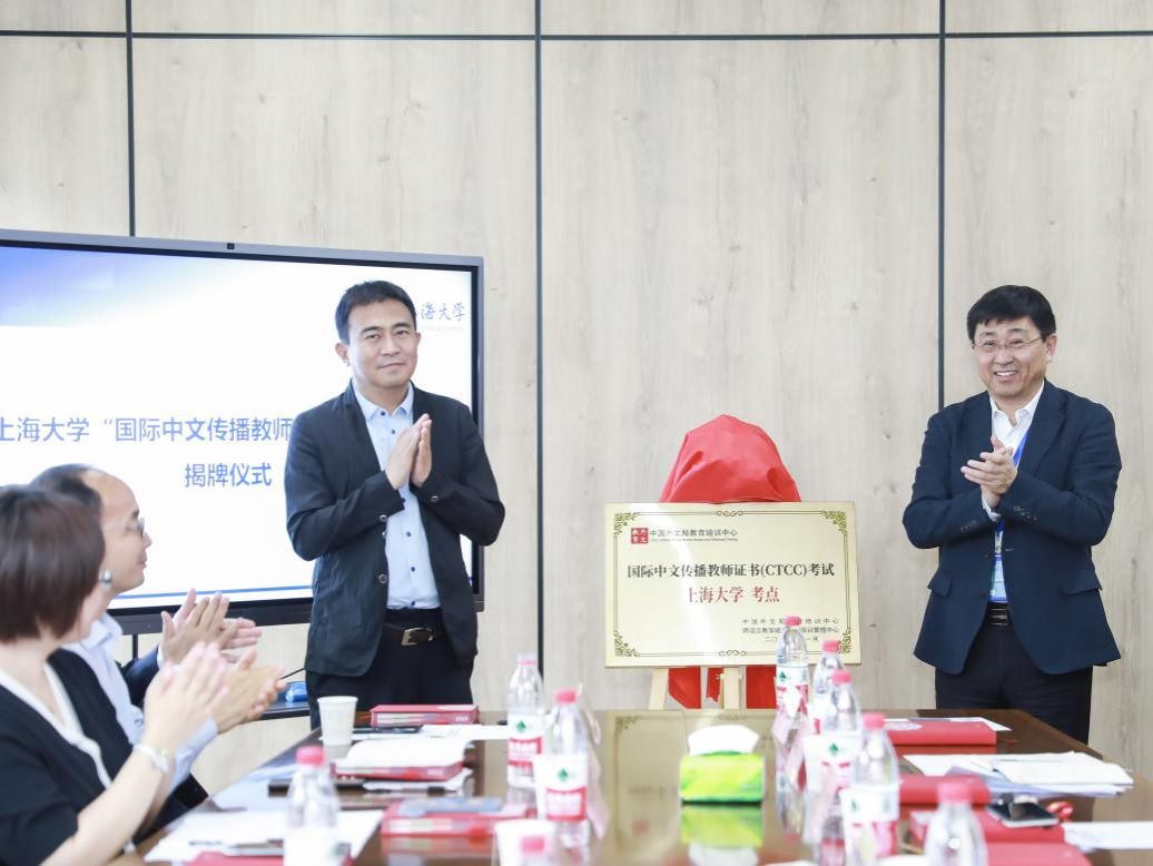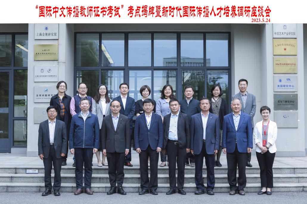 5月24日下午,金沙集团1862cc成色“国际中文传播教师证书考试”考点揭牌暨新时代国际传播人才培养调研座谈会在宝山校区智库楼举行。