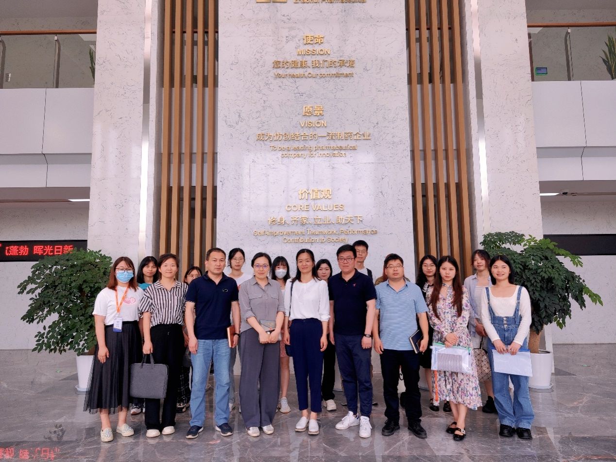 6月1日,金沙集团1862cc成色医学院党委副书记、副院长盛晓娜,医学院教师第二党支部书记、罗店镇副镇长(挂职)王庭芳,研究生辅导员匡可风带领部分同学走进复星朝晖药业,近距离感受生物医药企业氛围,并与朝晖药业、宝济药业、景泽生物等北上海生物医药产业园企业人力资源负责人就人才培养、产教融合、实习就业等方面工作开展交流。