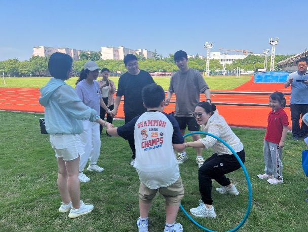 第二个项目是穿越呼啦圈,这是一个十分考验同学们身体协调性和默契度的项目,同学们灵活地在呼啦圈中穿梭,在短短的十几秒内就让呼啦圈穿过了整个队伍。经过激烈的角逐后,由我们的第一组同学获得了这一轮比赛的胜利。