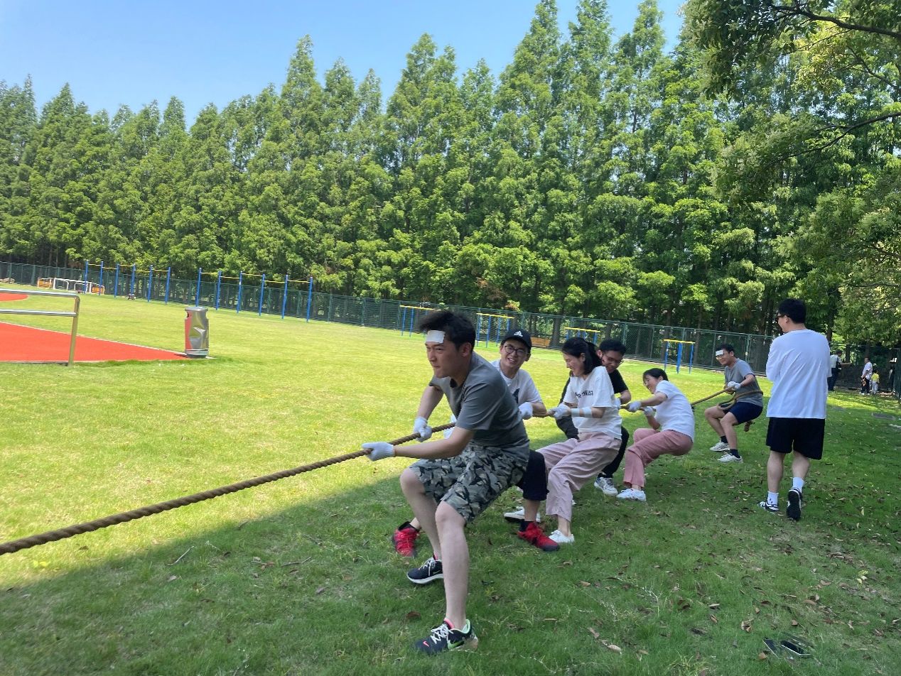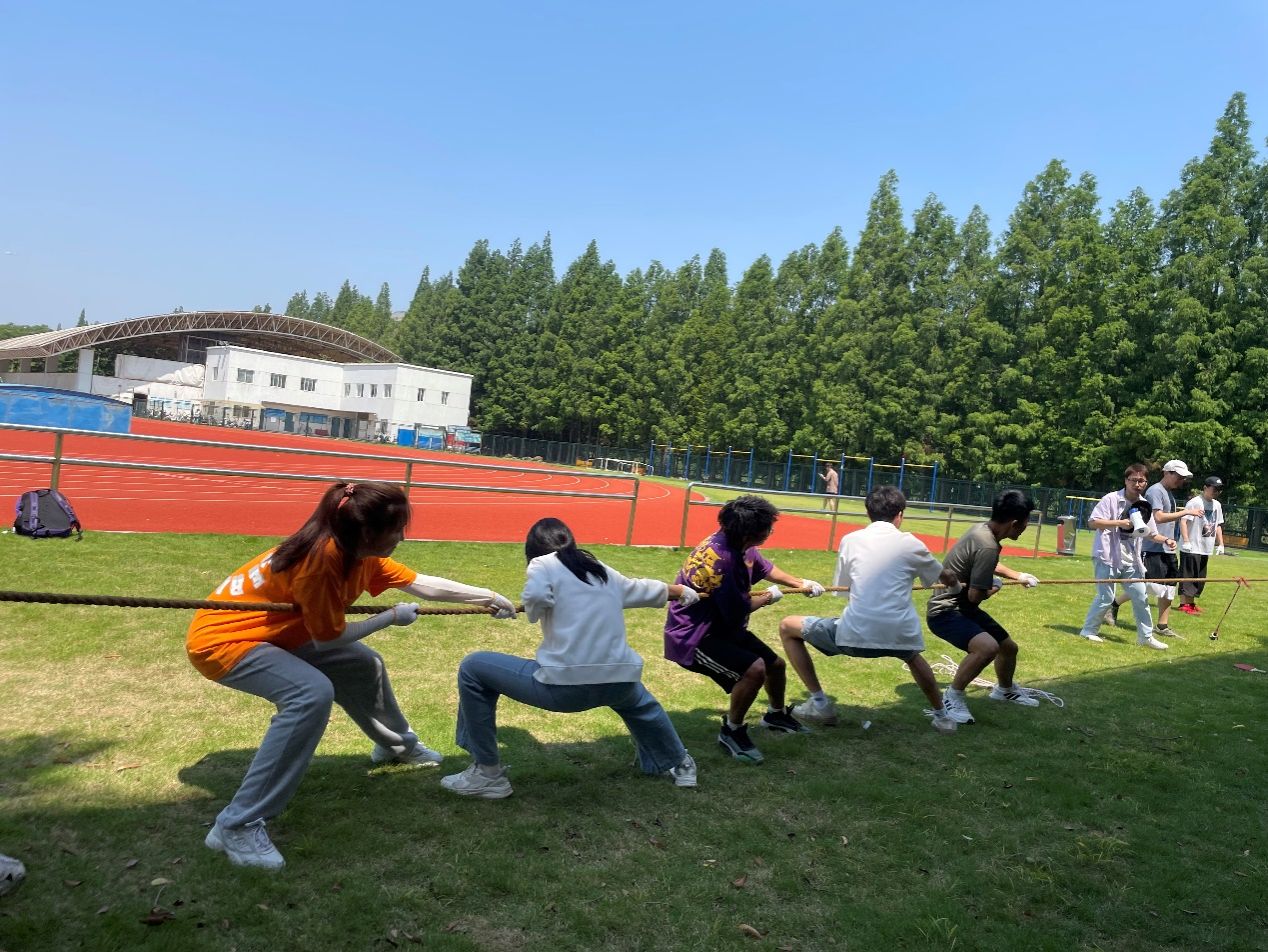 最后一个项目是拔河比赛,同学们通过抽签分为三个组开始比赛,组内获胜的队伍将进入到下一轮,直到三轮比赛结束后决出最终的冠军。所有选手戴好手套,手挨着手,用尽全身力气与对方顽强拼搏。哪怕已经大汗淋漓,身心疲惫,所有选手依然都是全力以赴,不仅展现了同学们顽强的毅力和拼搏精神,更是有着为集体争荣争光的团队意识。