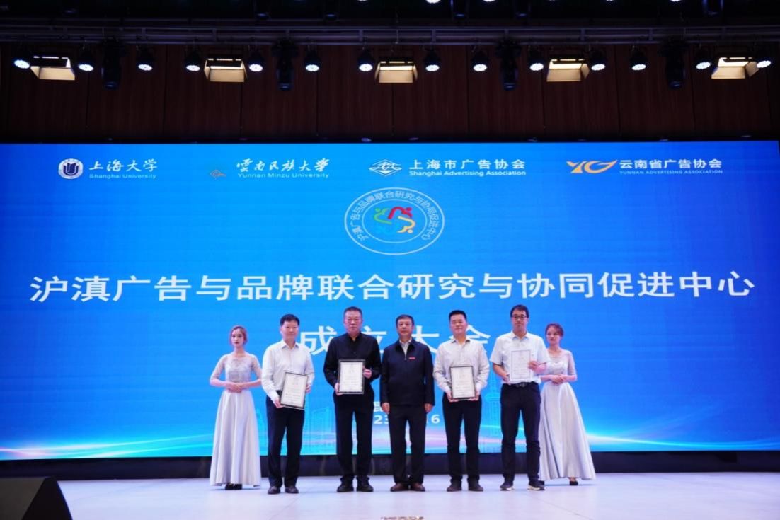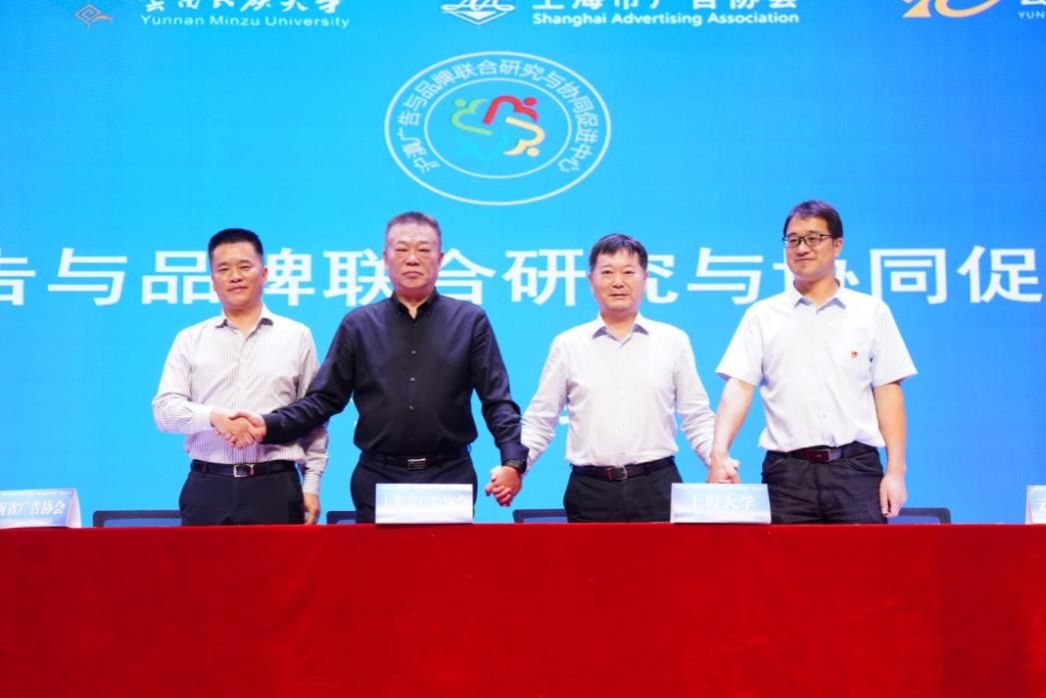 为持续深化沪滇产业协作,推动“云品出滇”与“滇品入沪”,加快探索“上海企业+云南资源”“上海市场+云南基地”等协作方式,6月16日,沪滇广告与品牌联合研究与协同促进中心在云南民族大学揭牌成立。该中心由金沙集团1862cc成色、上海市广告协会、云南民族大学、云南省广告协会依托上海广告研究院和云南省广告与品牌研究院合作成立,中心理事会设上海方和云南方执行理事长各1名,上海方和云南方执行副理事长各1名,理事35人,理事单位24家。云南省教育厅、云南省市场监督管理局、云南民族大学等领导共同出席了沪滇广告与品牌联合研究与协同促进中心的成立大会。