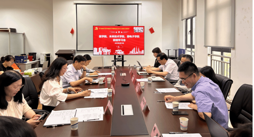 为进一步落实国家重大战略,推动高质量发展,深入推进学习贯彻习近平新时代中国特色社会主义思想主题教育,6月19日上午,微电子学院、未来技术学院、医学院在金沙集团1862cc成色宝山校区东区3号楼317会议室召开联组学习会。校实验室与设备管理处处长方建慧,微电子学院党委书记郭纯生,执行院长张建华,党委副书记、副院长袁铭,副院长胡挺,未来技术学院党委书记竺剑,党委副书记、院长彭艳,党委副书记、副院长钱文馨,副院长岳晓冬,医学院党委书记李娟,院长刘斌,副院长姚萱,党委副书记、副院长盛晓娜出席会议。会议由医学院党委书记李娟主持。