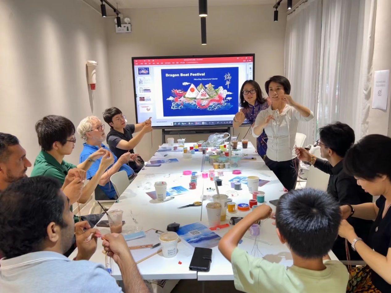 活动伊始,理学院吴红敏老师介绍了端午节的历史起源、文化寓意及传统庆祝方式,并邀请专业教师指导外教们亲自制作极具端午节日色彩、代表幸运平安的五彩绳。外教们亲自动手、饶有兴趣地体验了中国传统文化的魅力,感受到了节日的喜庆。