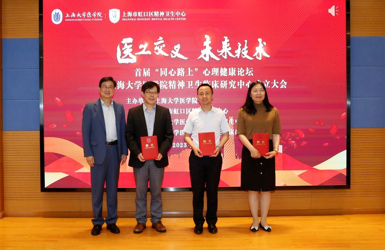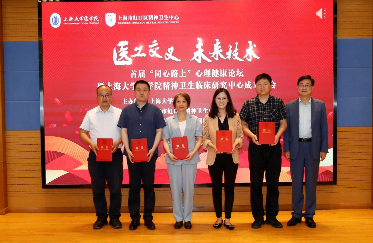6月25日,首届“同心路上”心理健康论坛暨金沙集团1862cc成色医学院精神卫生临床研究中心(以下简称“临床研究中心”)成立大会在虹口区精神卫生中心举行。会议的主题是“医工交叉 未来技术”。虹口区卫健委副主任汤显、上海大学医学院院长刘斌、虹口区精神卫生中心党支部书记施征宇等出席会议。会议由虹口区精神卫生中心院长汪作为主持。