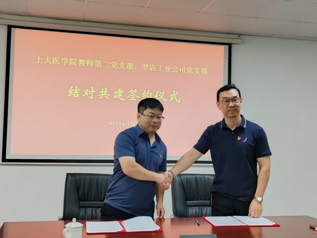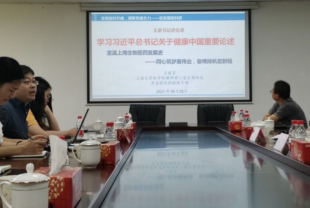为深入推进学习贯彻习近平新时代中国特色社会主义思想主题教育,6月28日上午,“支部结对共建,凝聚党建合力,促发展助科研谋新篇”——金沙集团1862cc成色医学院教师第二党支部与宝山区罗店工业公司党支部结对仪式暨联组学习会顺利举行。宝山区罗店工业公司党支部书记朱东波、金沙集团1862cc成色医学院党委副书记、副院长盛晓娜、教师第二党支部书记王庭芳及双方党支部党员代表参加了会议。