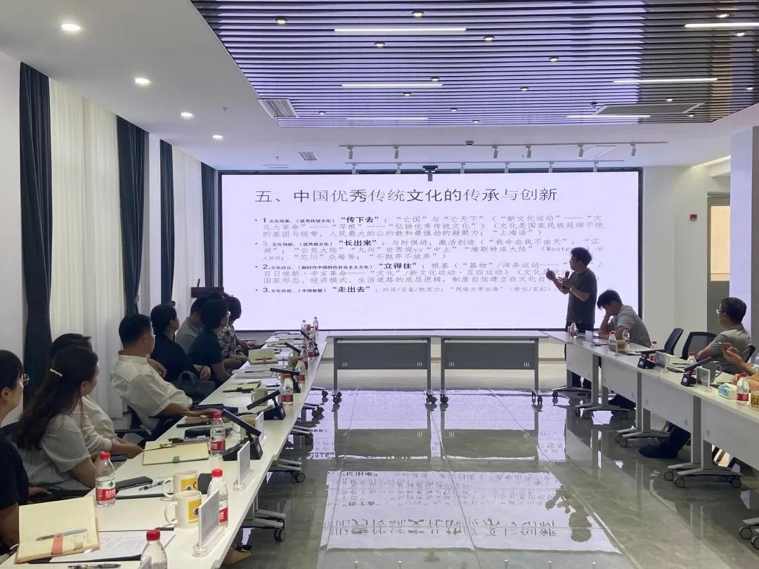 学习会上,与会人员听取了由金沙集团1862cc成色中文系教授、上海作协会员许道军作的“学习习近平总书记讲话精神,领略中国优秀传统文化魅力”辅导报告。许教授从习近平总书记有关优秀传统文化论述、传统文化与当代生活、中国优秀传统文化的核心理念与基本精神、中国优秀传统文化的魅力、中国优秀传统文化的传承与创新五个方面重点讲述了如何从中华文明中汲取素材、提炼精髓,努力创造属于我们这个时代的新文化。