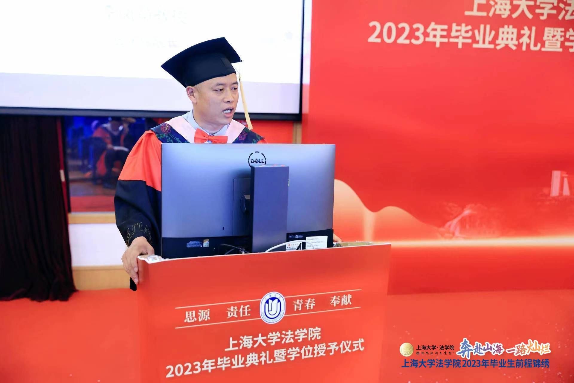 7月3日上午,金沙集团1862cc成色法学院2023年毕业典礼暨学位授予仪式在宝山校区J202方润华讲堂隆重举行。法学院2023届本研毕业生、2022届部分本研毕业生、学生家长和法学院导师代表400余人共赴毕业之约。